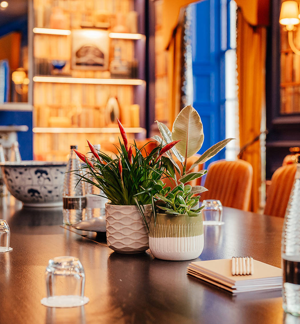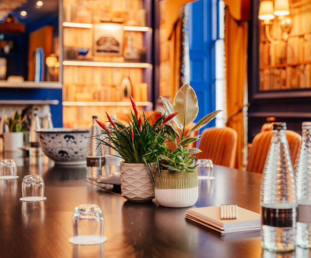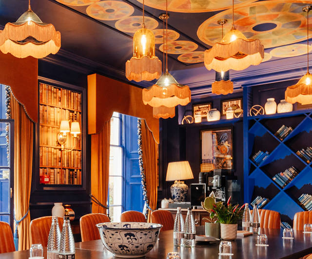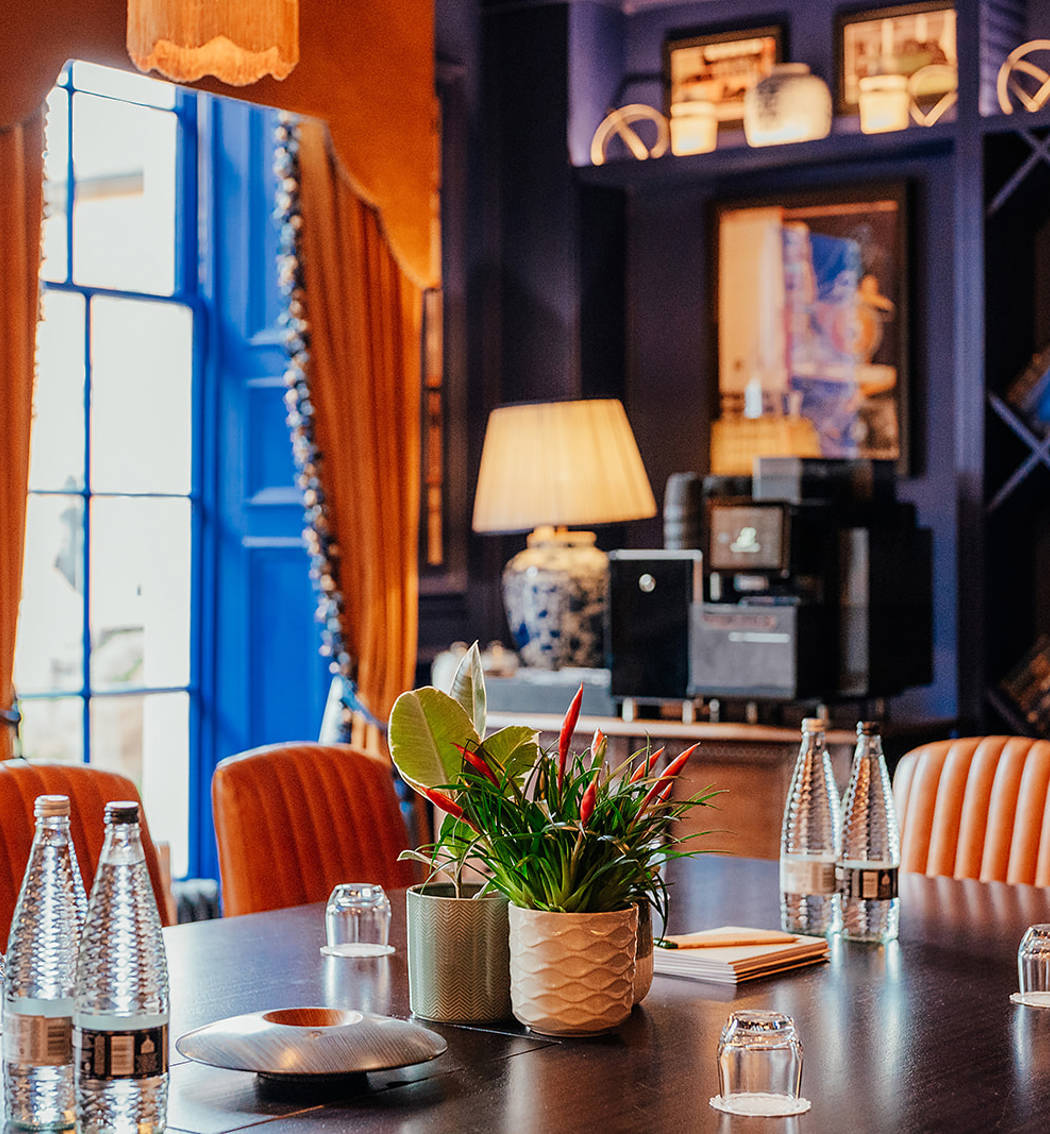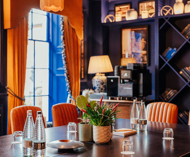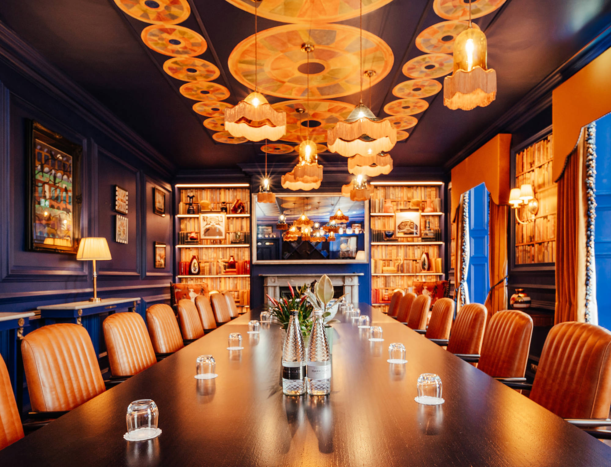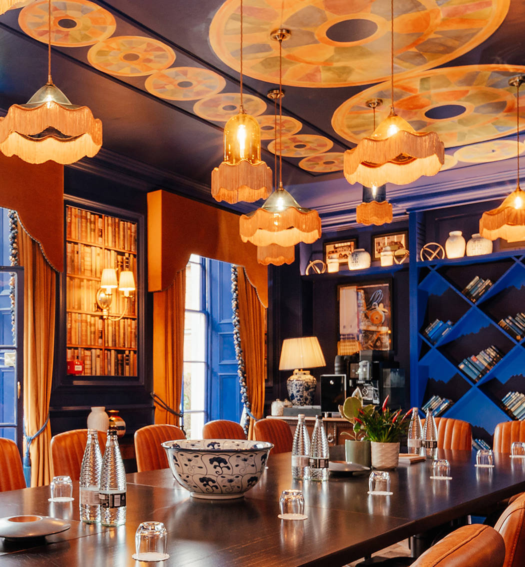 Situated on the ground floor, the true blue walls and rich, coppery-orange furnishings create a space that’s vibrant and modern yet brimming with history – it's a perfect space for major meetings and private celebrations.
