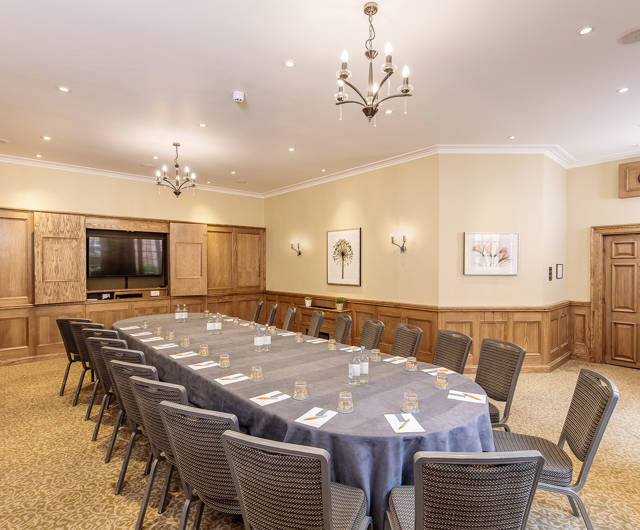 The Houghton Suite is located on the ground floor, with plenty of natural light and elegant wood panelling.