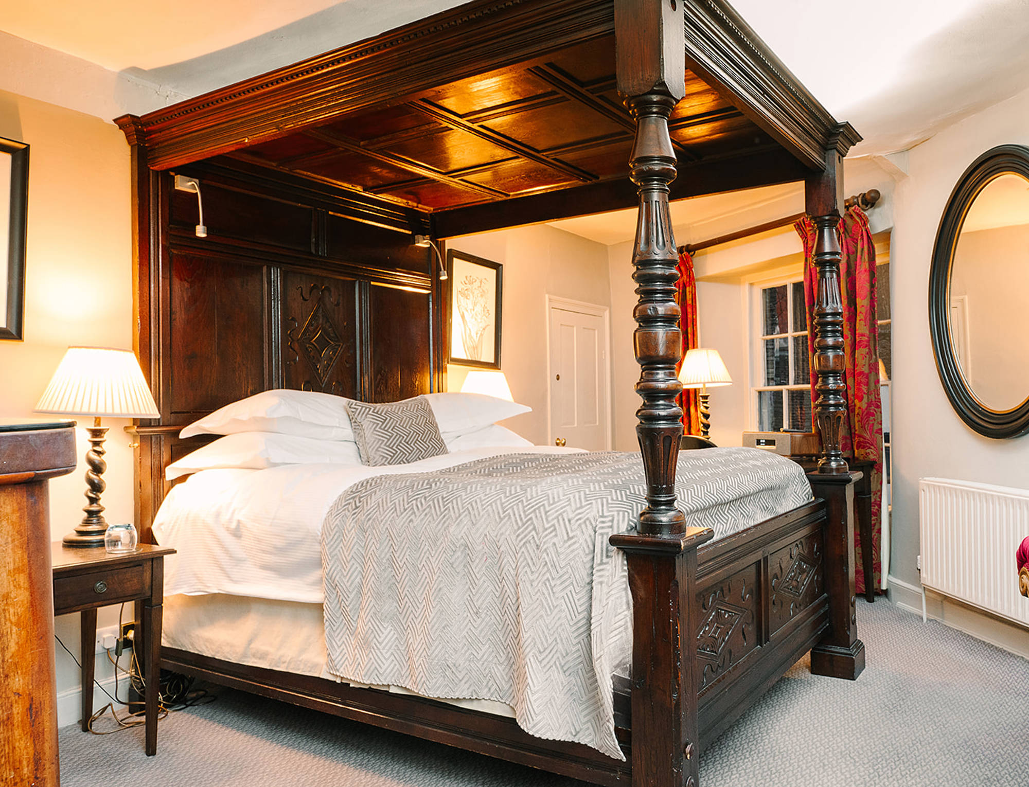 One night in a four-poster bed accompanied by a bottle of Ridgeview English sparkling wine or Noughty non-alcoholic wine. With a hearty breakfast the next morning. What a treat.
