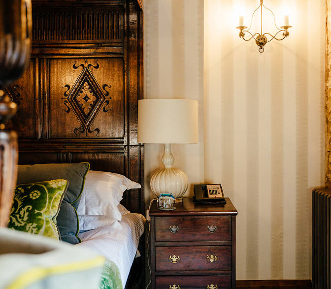 Each room has tremendous character – the intricate wood panelling, the exuberant wallpapers, perhaps a towering four-poster bed.