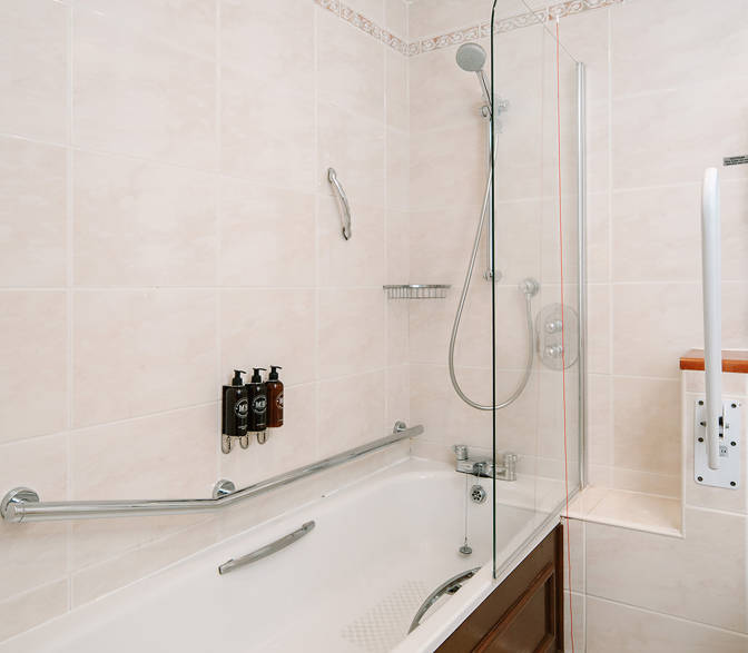Each room has widened doors and generous floor space that's easy to navigate. There is a pull-cord alarm connected to reception, so assistance is always available if needed.