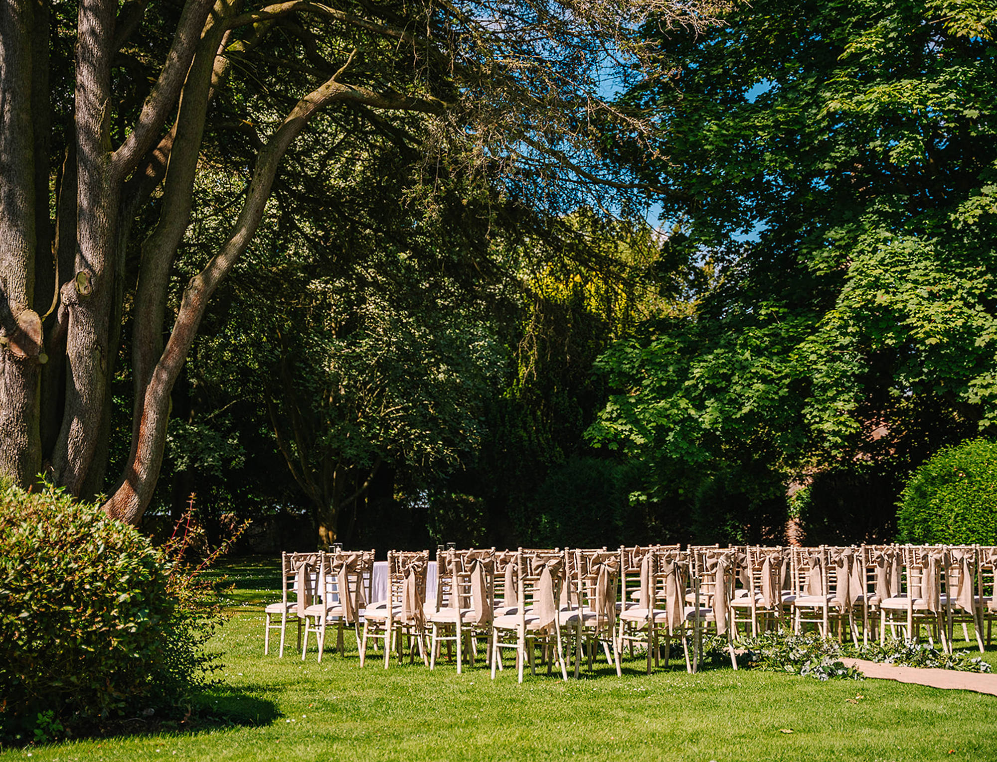 For a beautiful ceremony in the summertime, nothing can match the natural beauty and grandeur of the great outdoors. Our landscaped garden is a magical place where you can make your vows beneath the soaring branches of our 350-year-old cedar tree. Space for 160 guests.