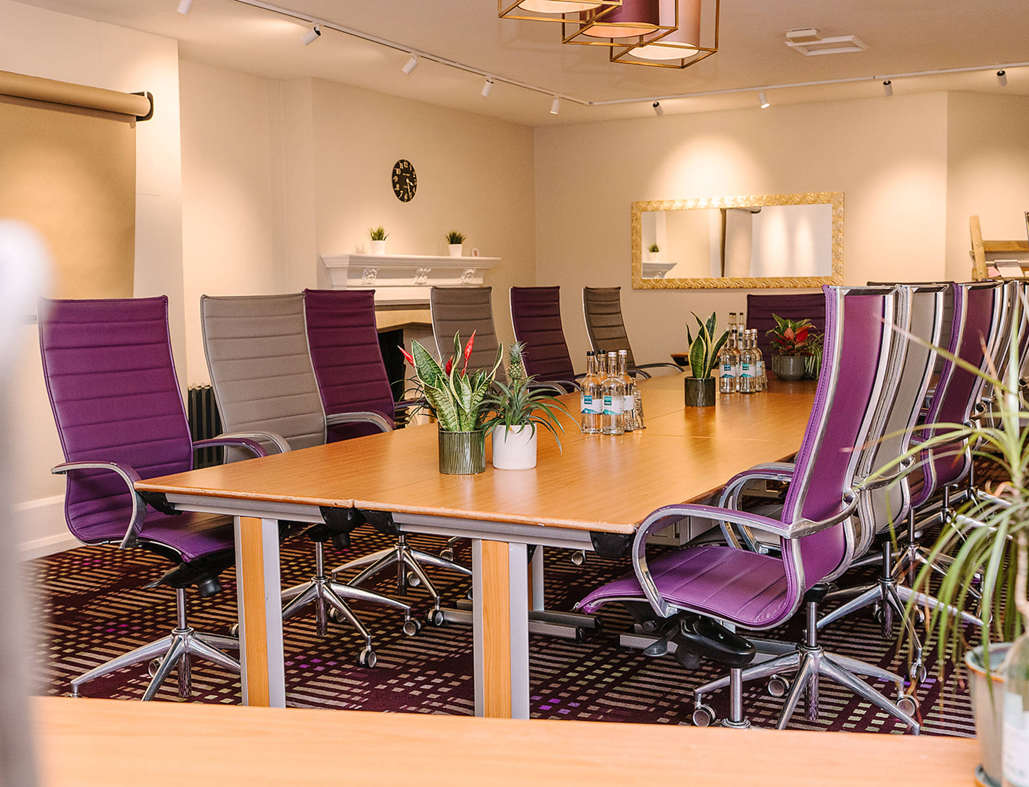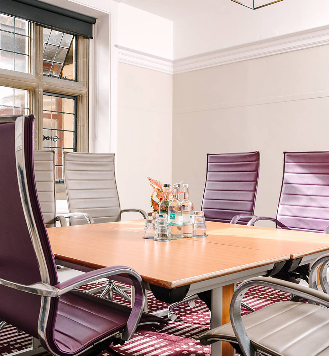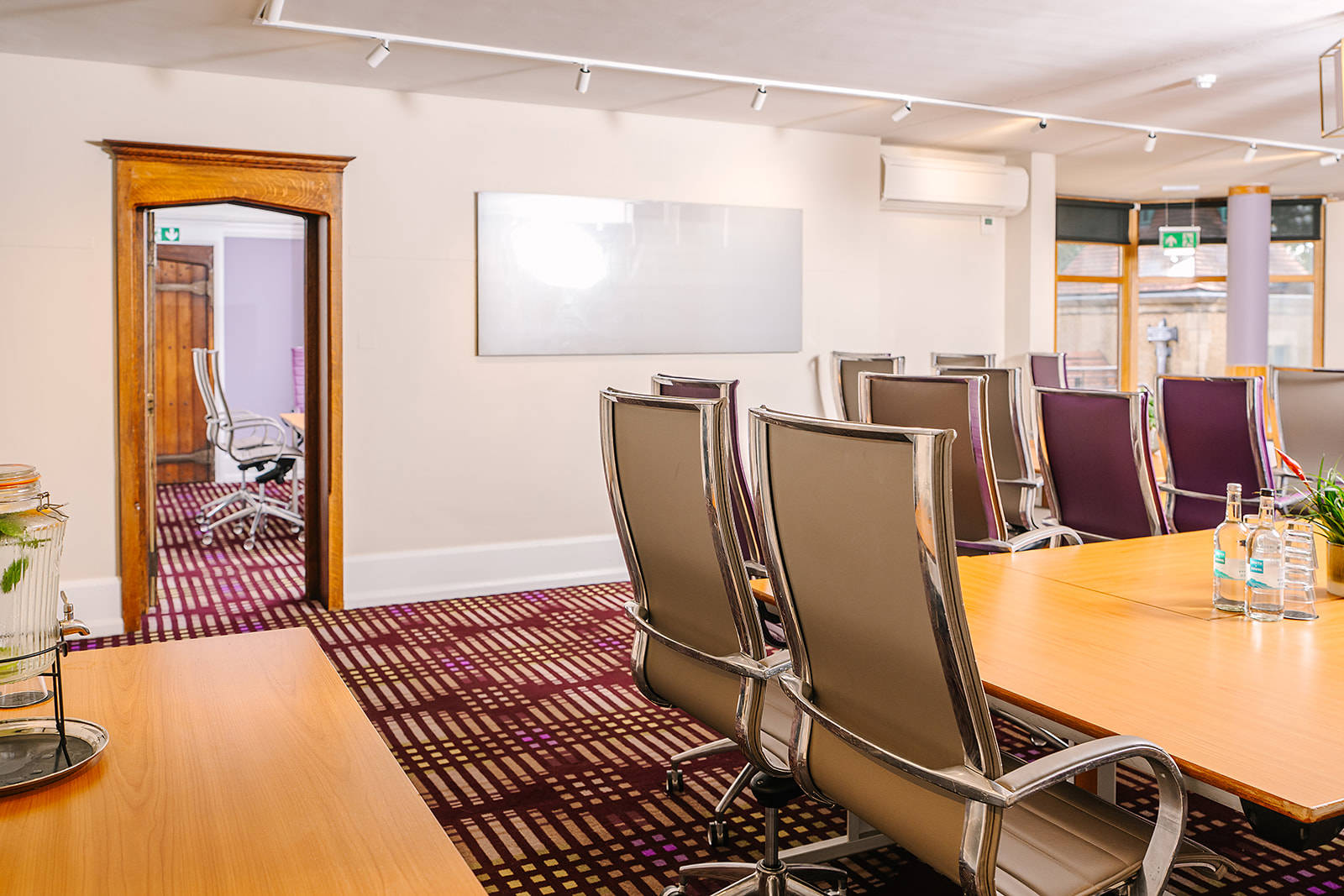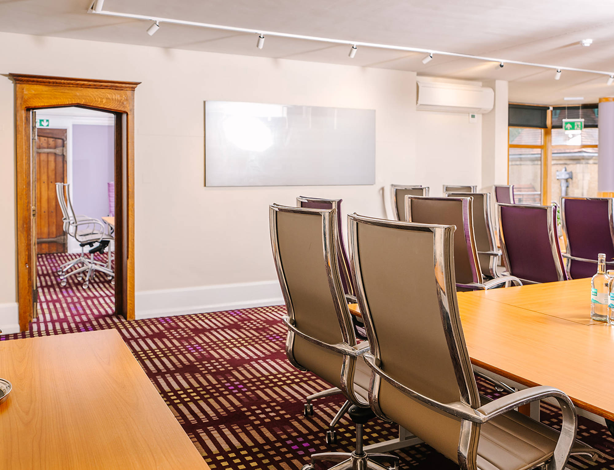 Located on the first floor of the main house, this meeting room offers a more contemporary aesthetic.