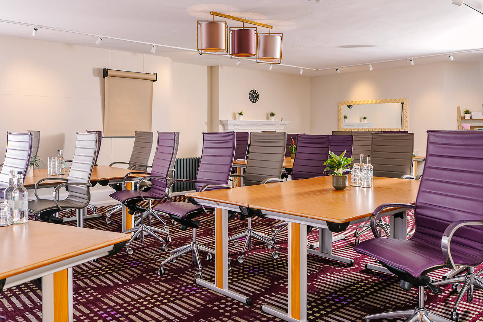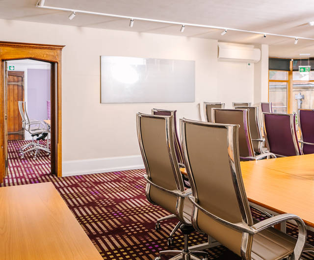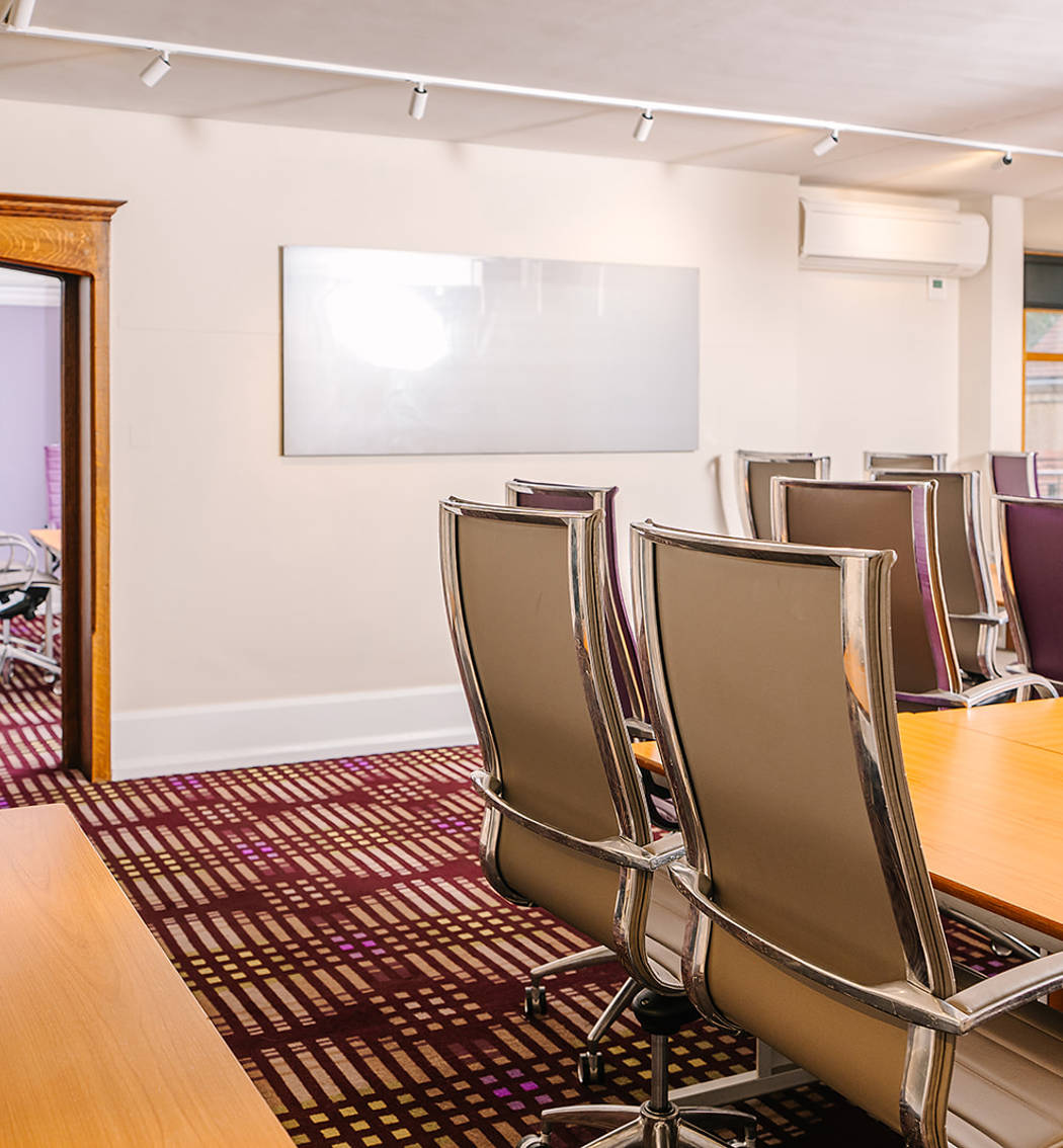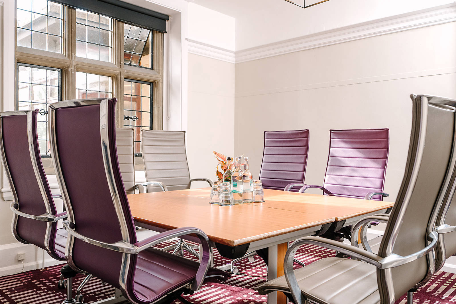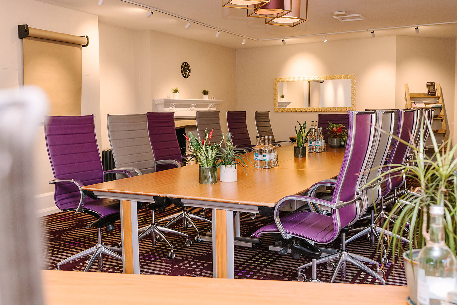 Located on the first floor of the main house, this meeting room offers a more contemporary aesthetic.