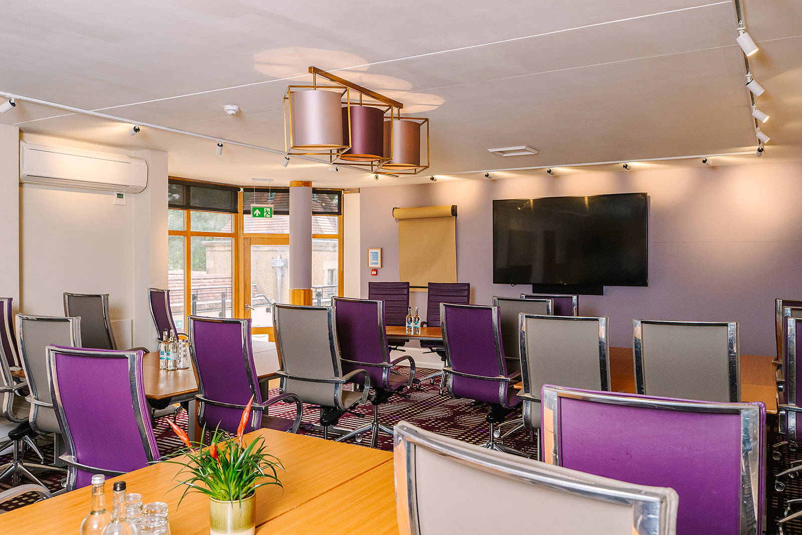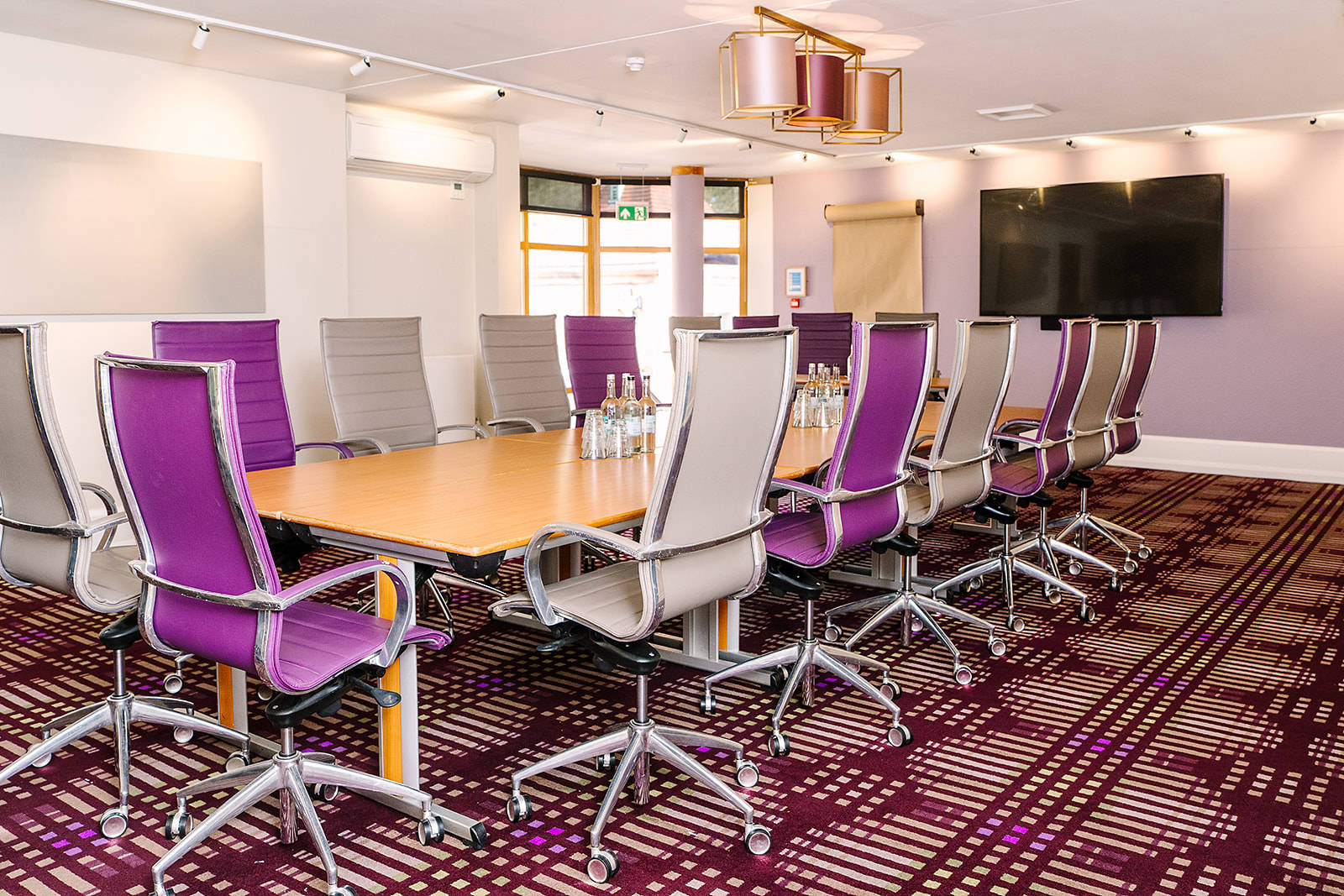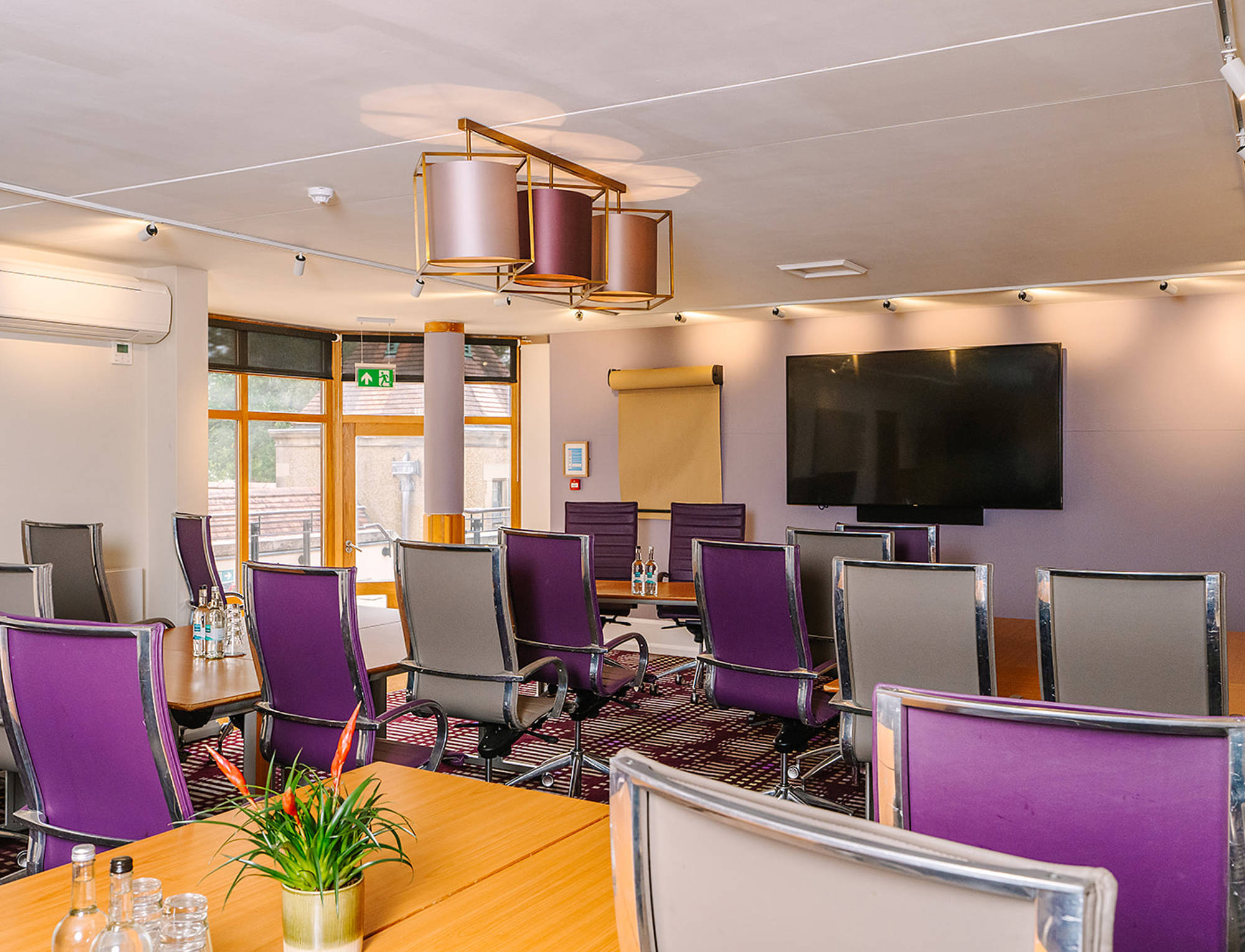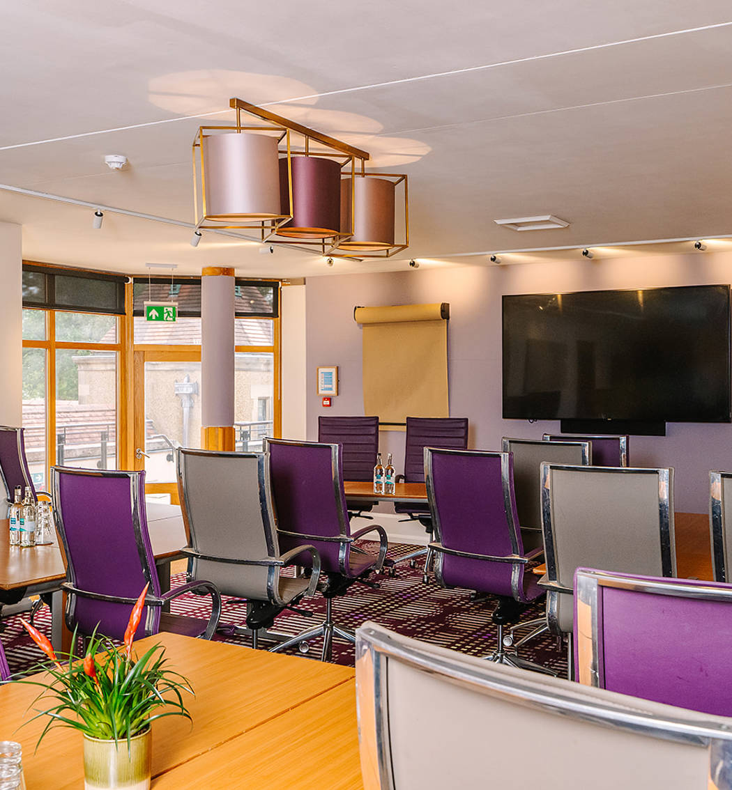 Located on the first floor of the main house, this meeting room offers a more contemporary aesthetic.