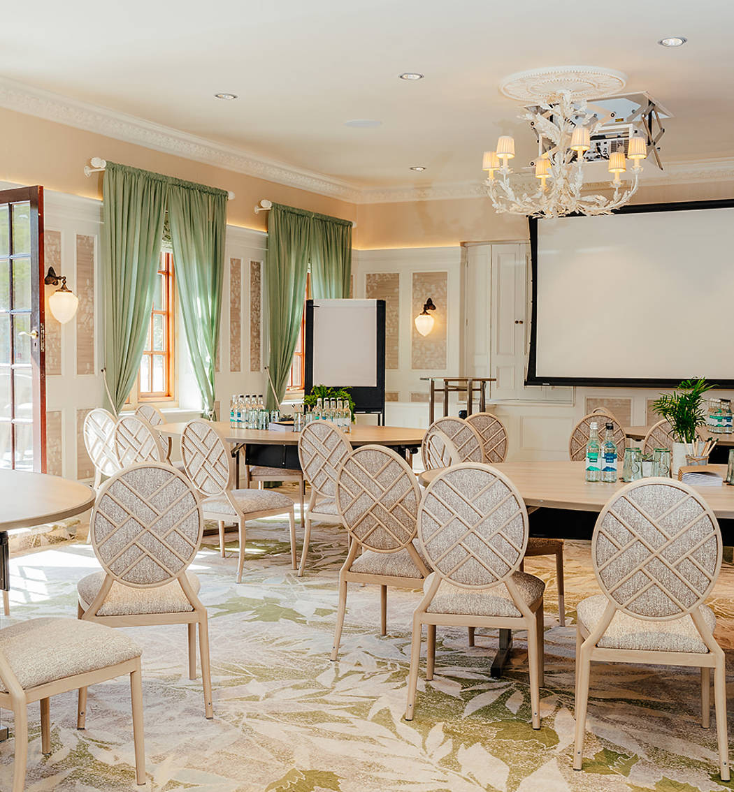 Large windows make this room naturally bright, ideal for meetings of all types and styles. For private dining, there's a built-in event bar and the neighbouring room, Water Iris, can be hired for extra space.