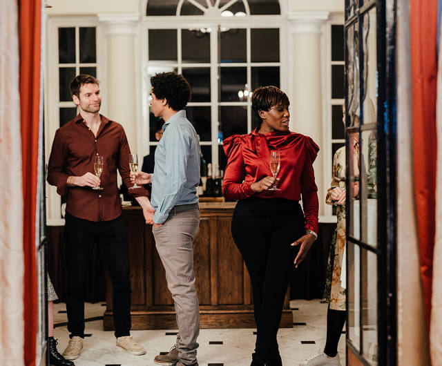 The Stuart is one of the rooms in the Main House and is beautifully decorated with wooden panelling and stained-glass windows. It also features a loggia with direct access onto the Lily Pond Terrace.