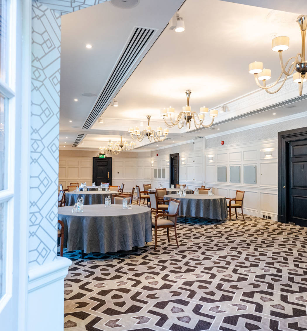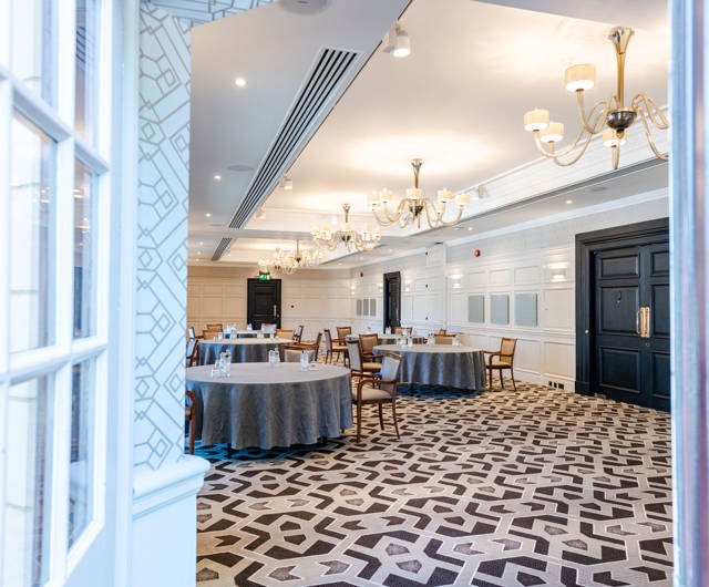 Situated on the lower ground floor with direct access outside to a terrace overlooking the spa, the Windsor room is bright with a large bay window letting in natural light in abundance.