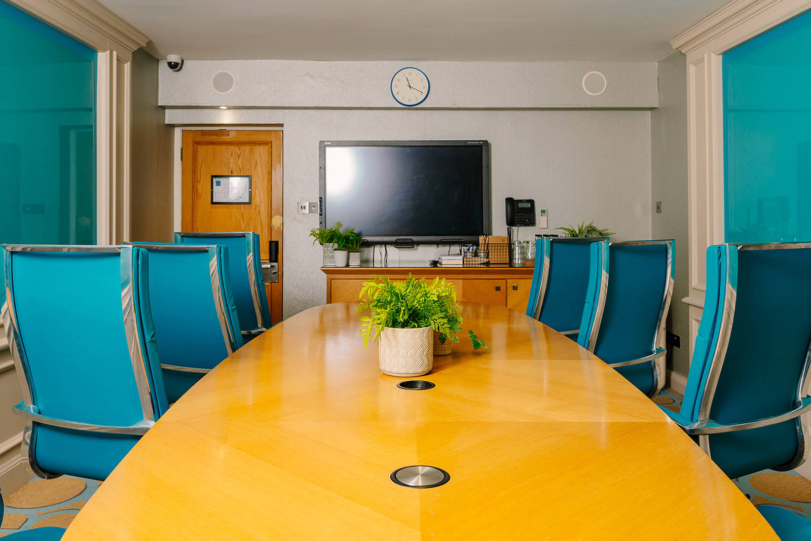 Configured permanently as a boardroom for up to ten delegates, the Blue Room has a fantastic contemporary, modern feel.