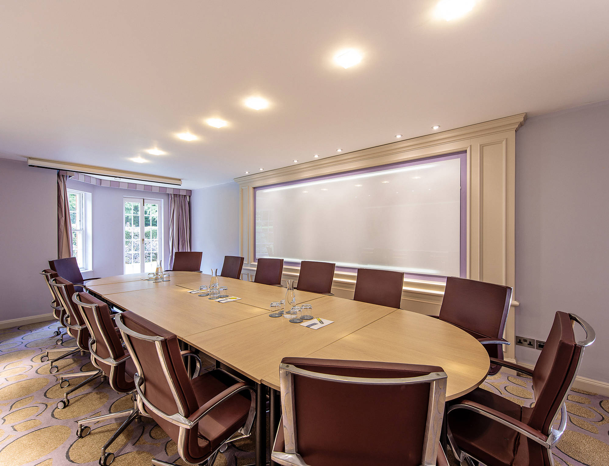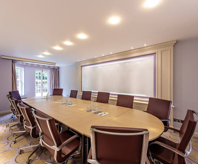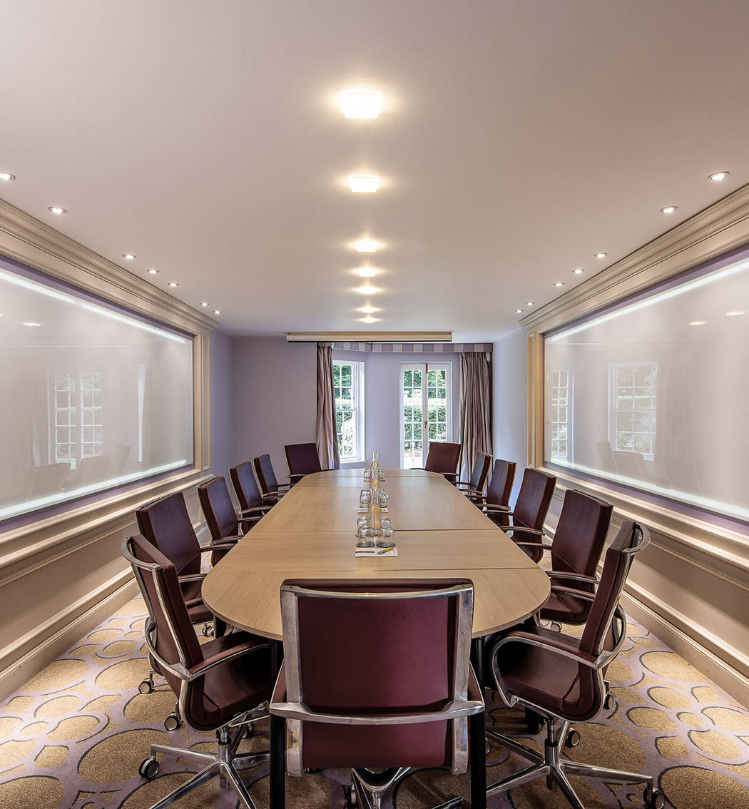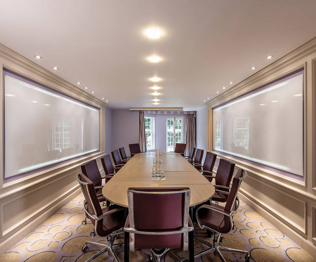 The White Room can be configured in boardroom style for up to 12 people and has direct access to an outdoor lawn area.