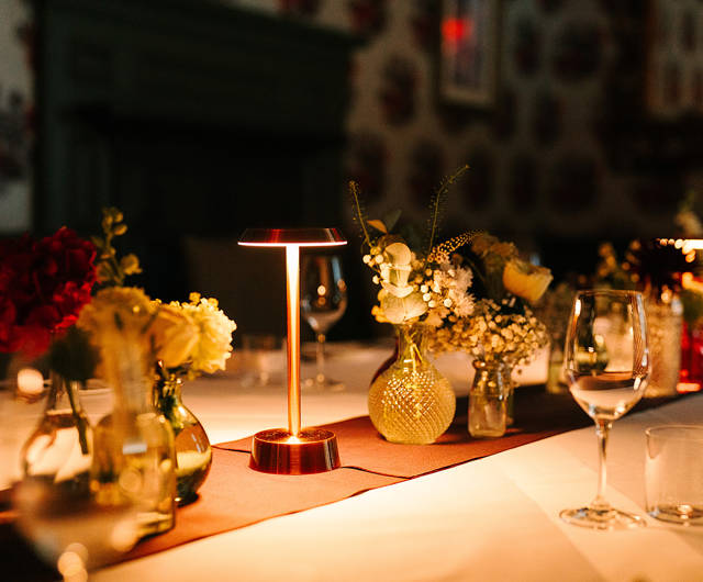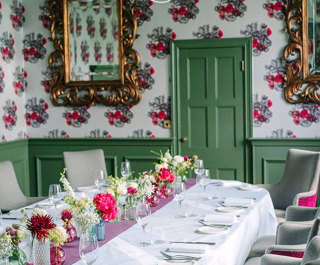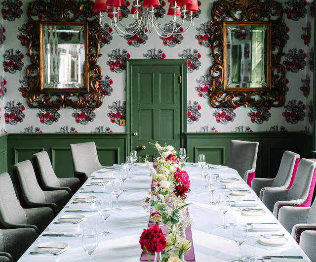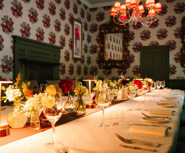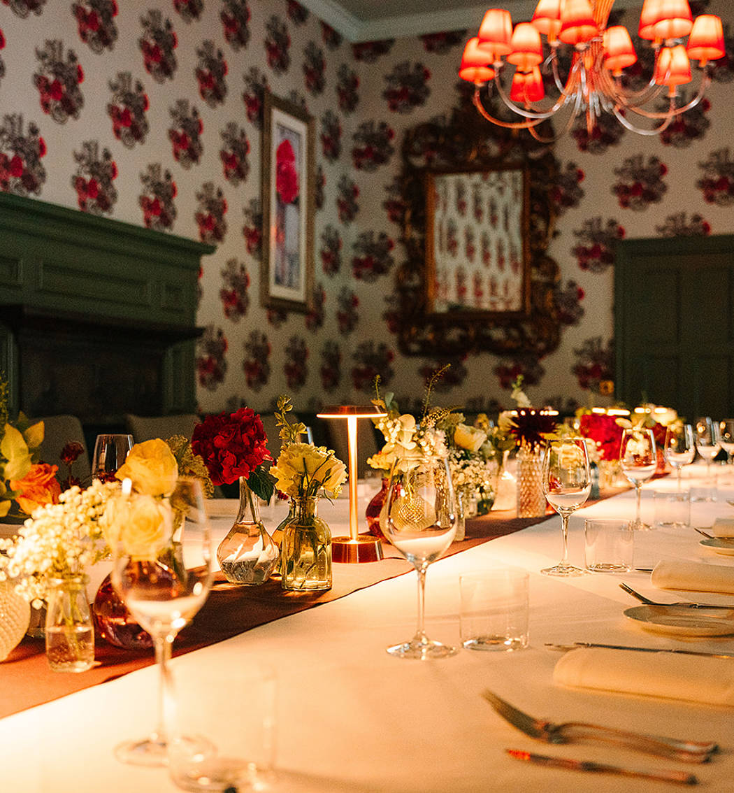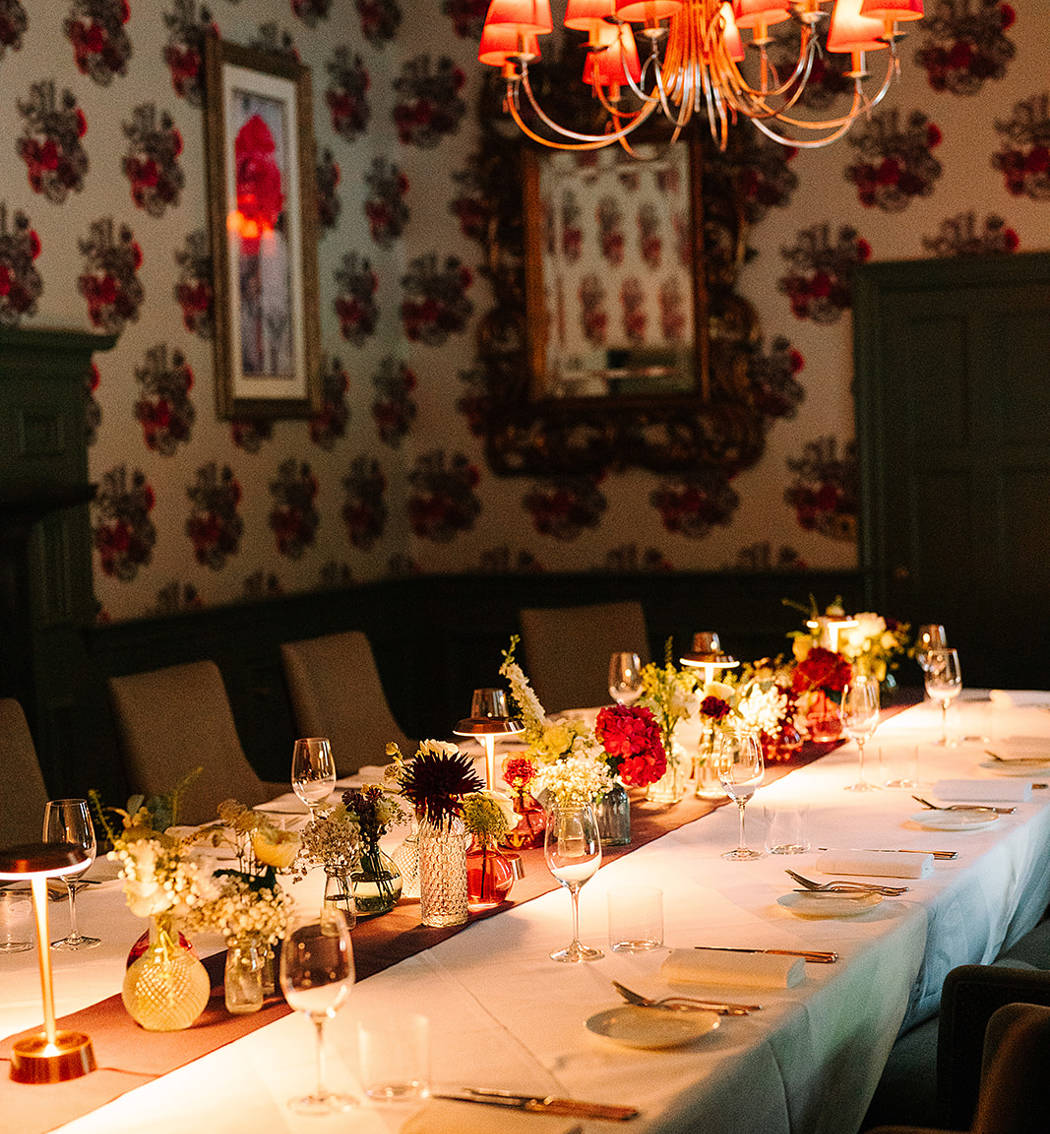 Lit naturally during the day, and by soft, warm lamps in the evening, this private dining room is atmospheric and enchanting.