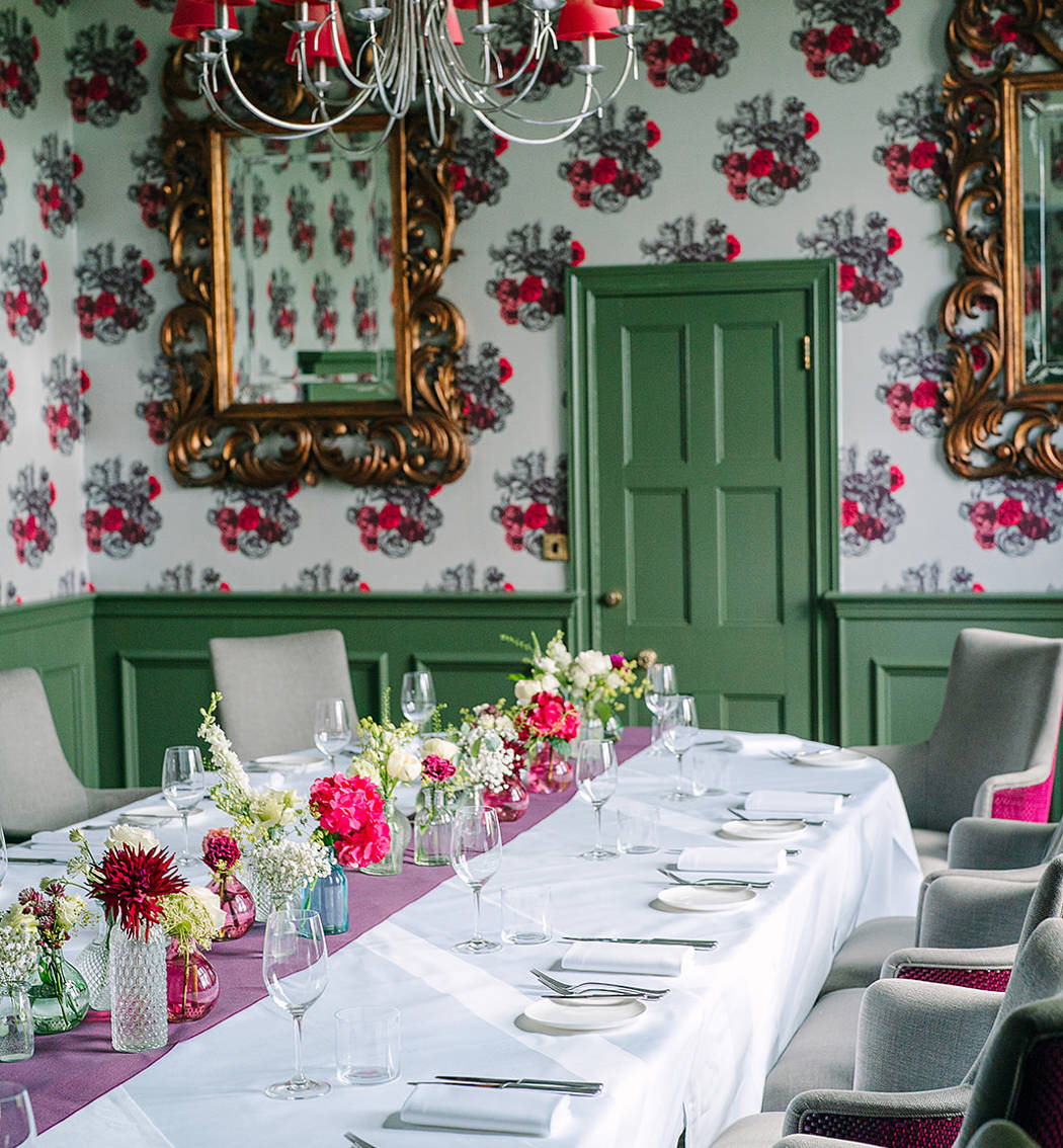 An original room in the main house, Camellia Two is a beautiful space with a host of original features, vibrant wallpaper and large picture windows overlooking the South Downs.