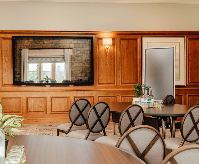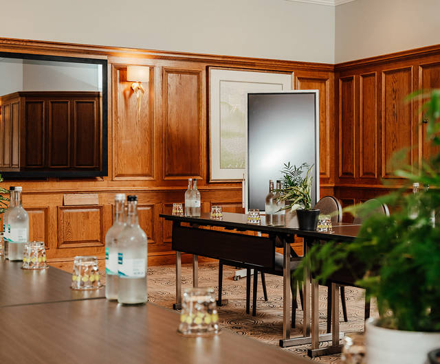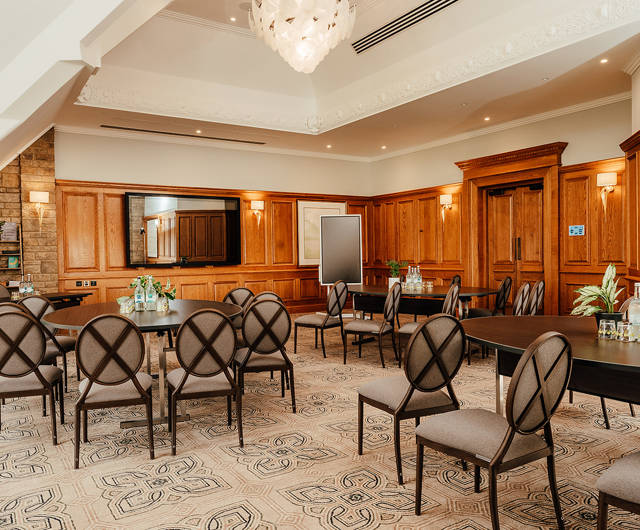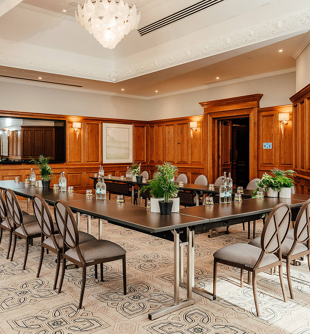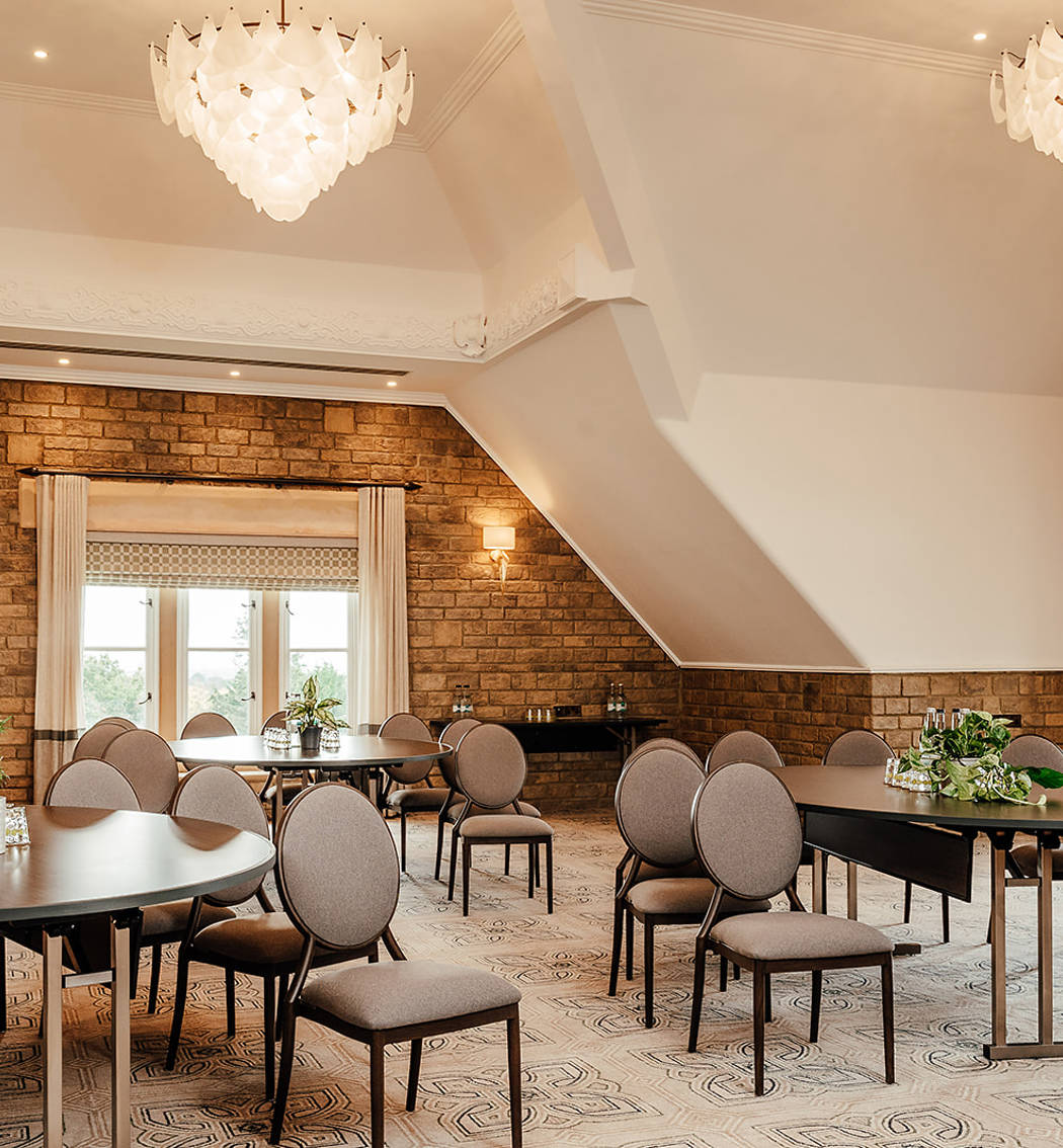 Located on the first floor, Goodwood is a fantastically well-lit meeting space overlooking the South Downs, with generous windows, spotlights and elegant chandeliers. Traditional wood panelling, exposed stonework and intricate cornicing make this one of our most beautiful rooms.