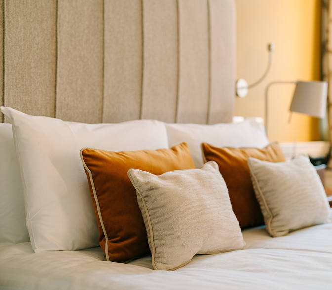 Decked out soft, pretty hues, our signature Bonsai room can be found in the original manor house.