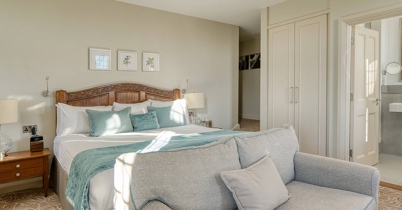Found in the original manor house, this signature room has views of both the Lakeside Pavilion and the chestnut lawn, with a working area and sofa that makes it perfect for prepping and preening for a big day – or simply bringing the kids for a family stay.
