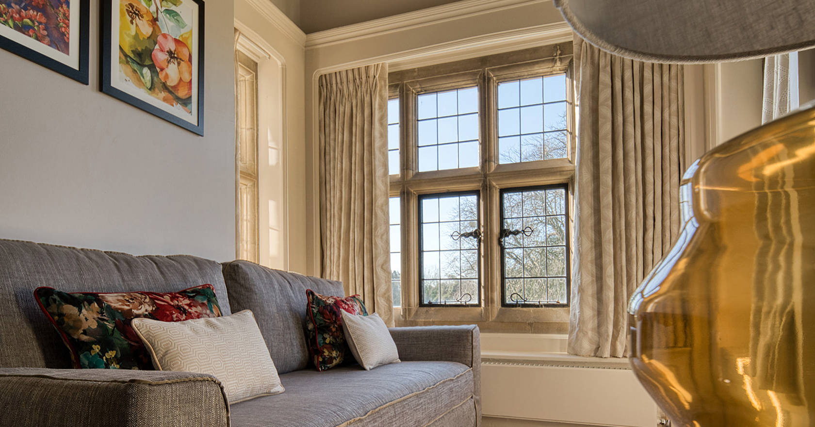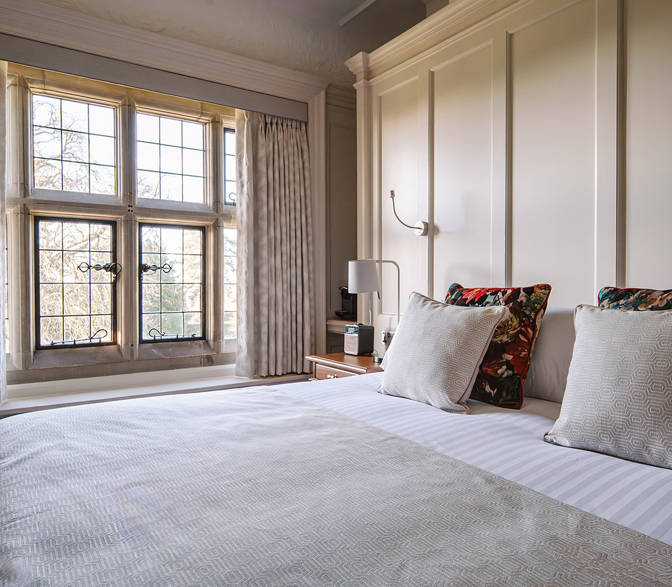 This handsome signature room in the manor house is resplendent with original features and commands beautiful views of the Chestnut lawn.