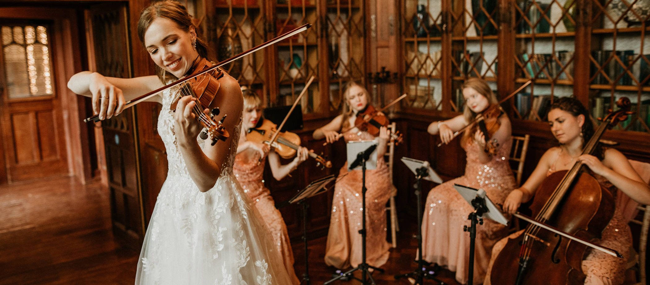 We had been taking dance lessons for 6 months prior to the wedding to prepare for our first dance. We were also practicing our violin duet quite a lot ahead of time. Anna also surprised Owen by playing a violin piece with the string quartet during the drinks reception.