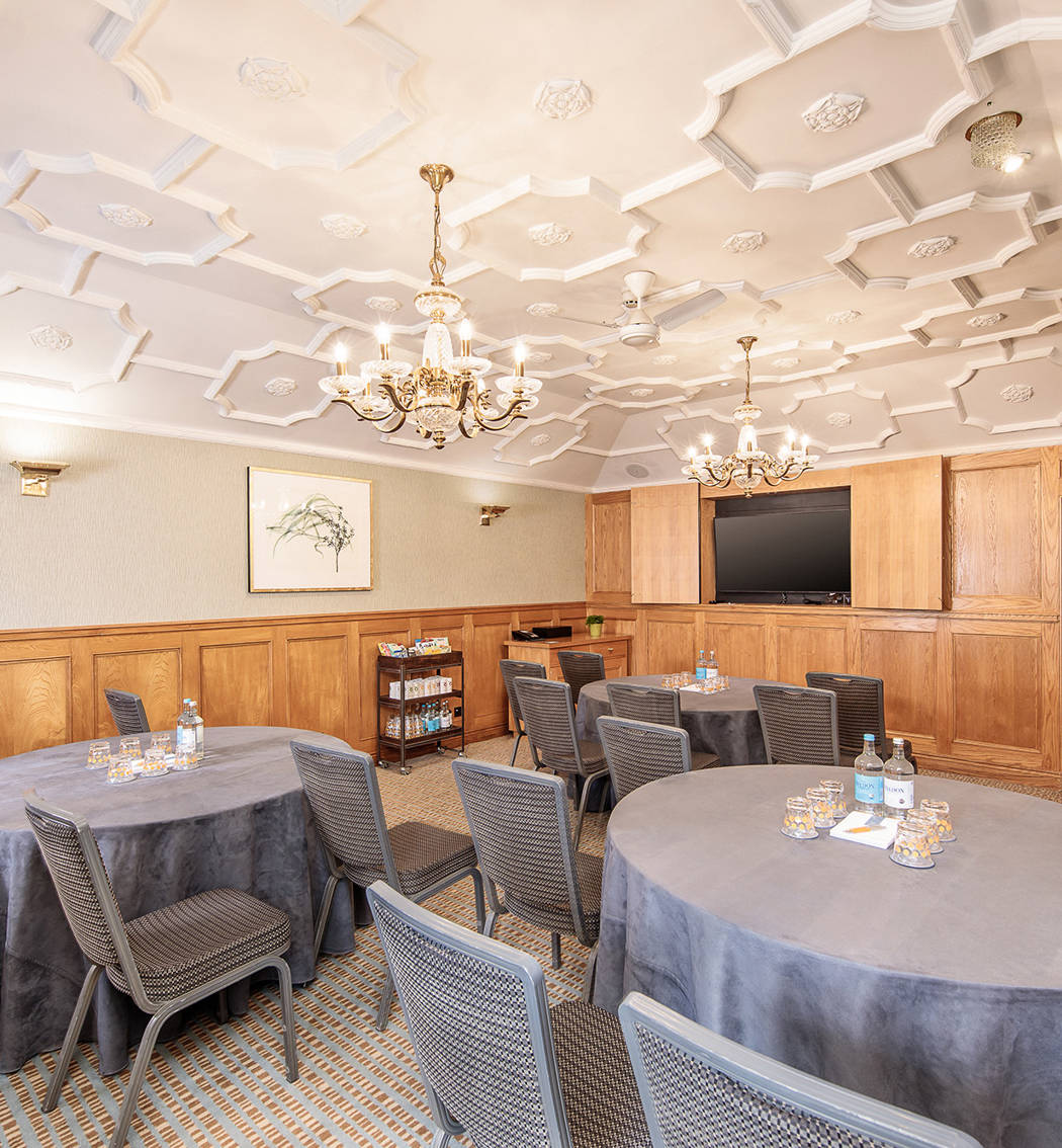 This flexible space can be arranged boardroom-style for 18, theatre-style for 35, or in a U-shape for 18.