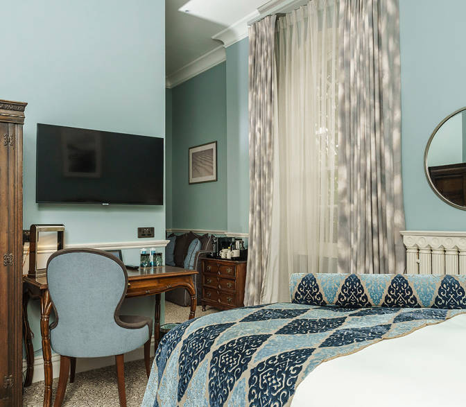Step inside and you’ll find a generous room with a king or queen-sized bed, comfy seating and an en-suite with both a bath and a rain shower.