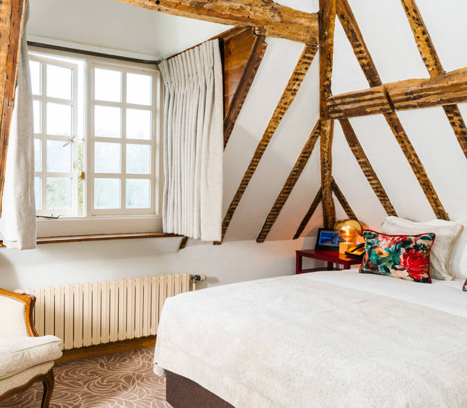 A sumptuous bed, characterful design and a countryside view to admire. Just perfect.
