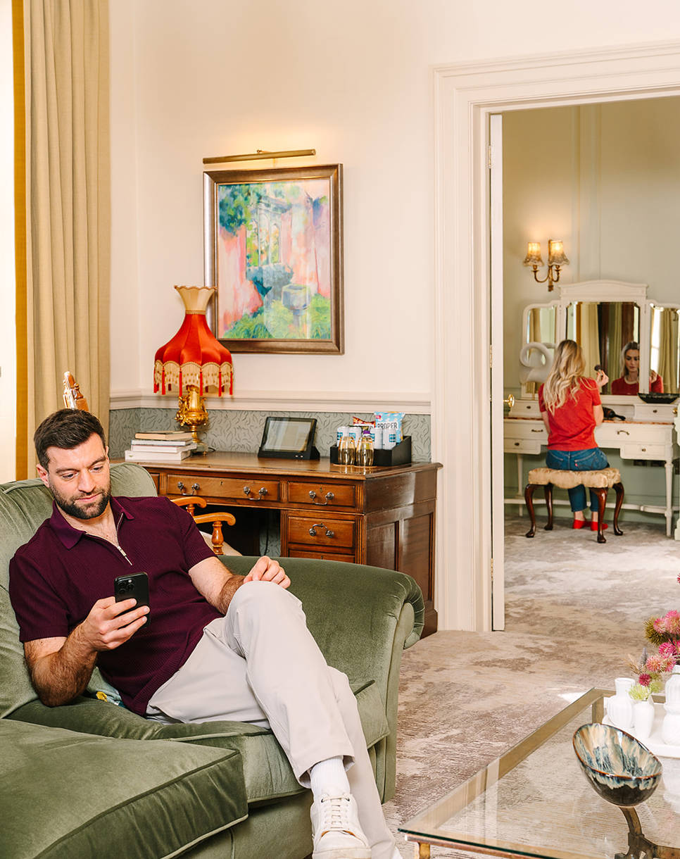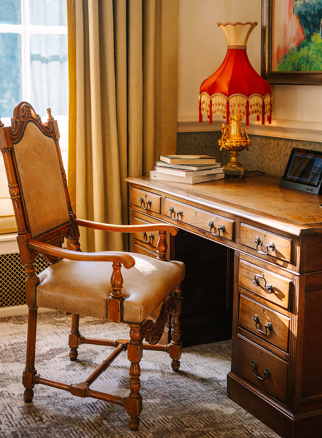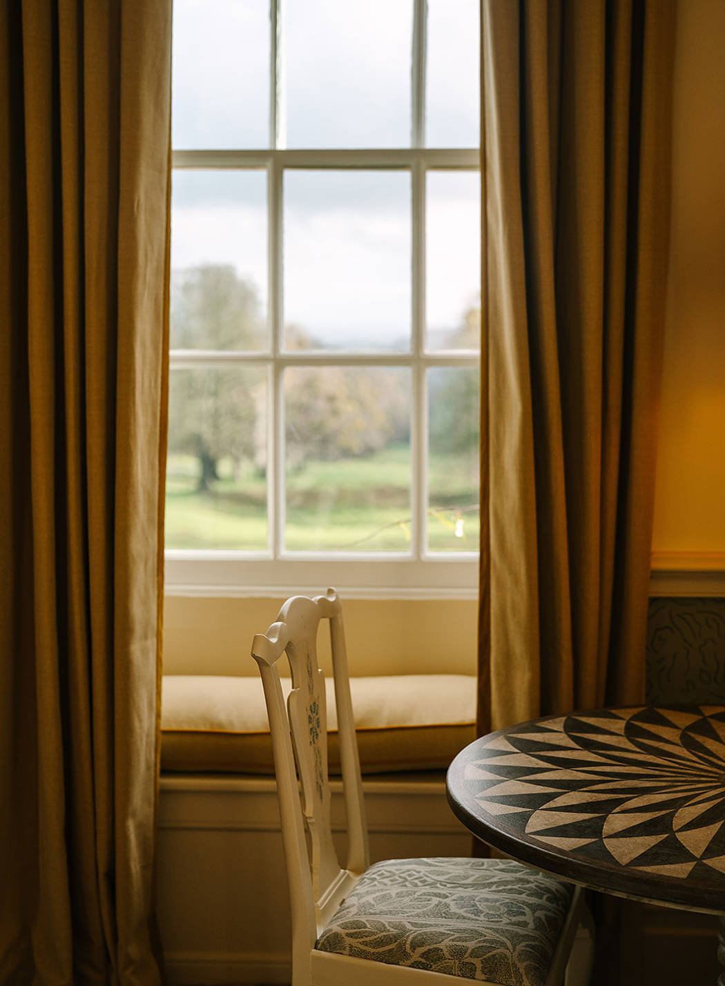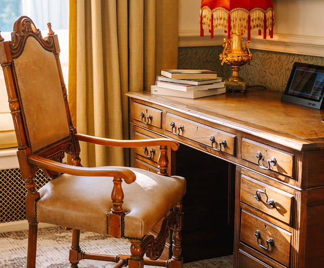 Found in the original Queen Anne house, this very special three-room suite enjoys uplifting double-aspect views over the gorgeous south lawn and the avenue of limes - best views in the house!