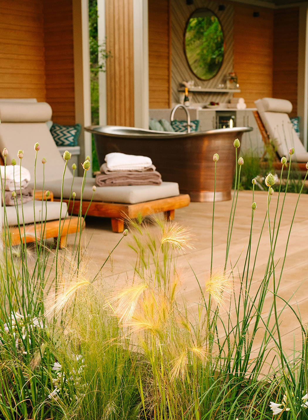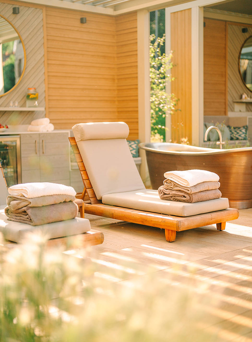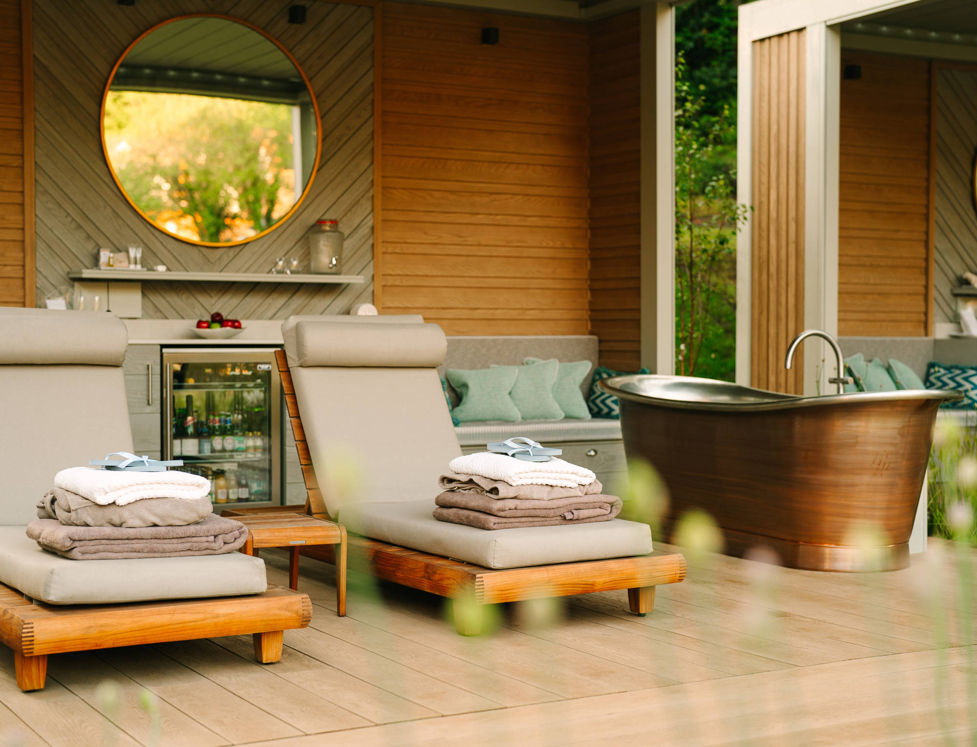 Indulge in a full day of relaxation with exclusive access to one of our four luxurious spa cabanas, privately yours from 9am to 8pm on the day of arrival. Enjoy the ultimate outdoor bathing experience in your copper bath, complete with spa jets, or unwind on private loungers, available in the shade or sun on the extended deck. Throughout your day, you’ll have full access to the spa, making the cabana your perfect base for relaxation.