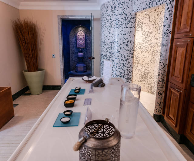 Then covering your body with a mud scrub and liberally applying to your partner too, simply sit back and relax in the steam chamber – the muds will nurture your hair and body, before washing off with a warm tropical shower.
