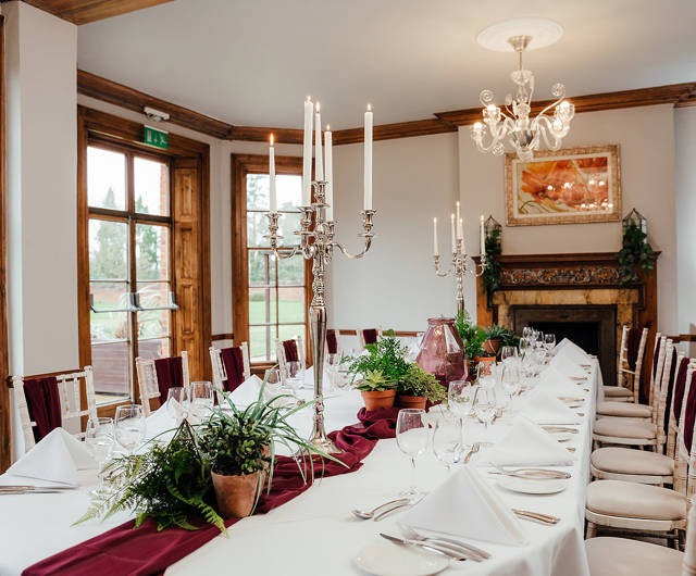 With daylight spilling in through the lovely panelled windows and the typical features of a stately home library, the room can accommodate up to 30 guests and is ideal for board meetings, receptions and private dinners.