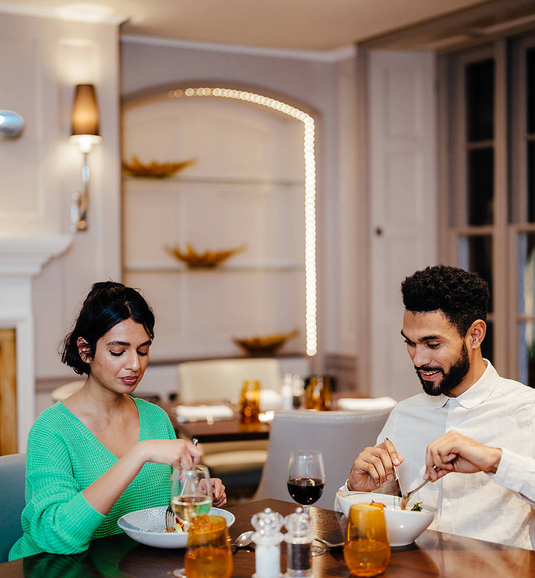 Indulge in a relaxed dinner at our restaurant. Enjoy seasonal dishes, exceptional flavours, and a cosy atmosphere perfect for a romantic evening.