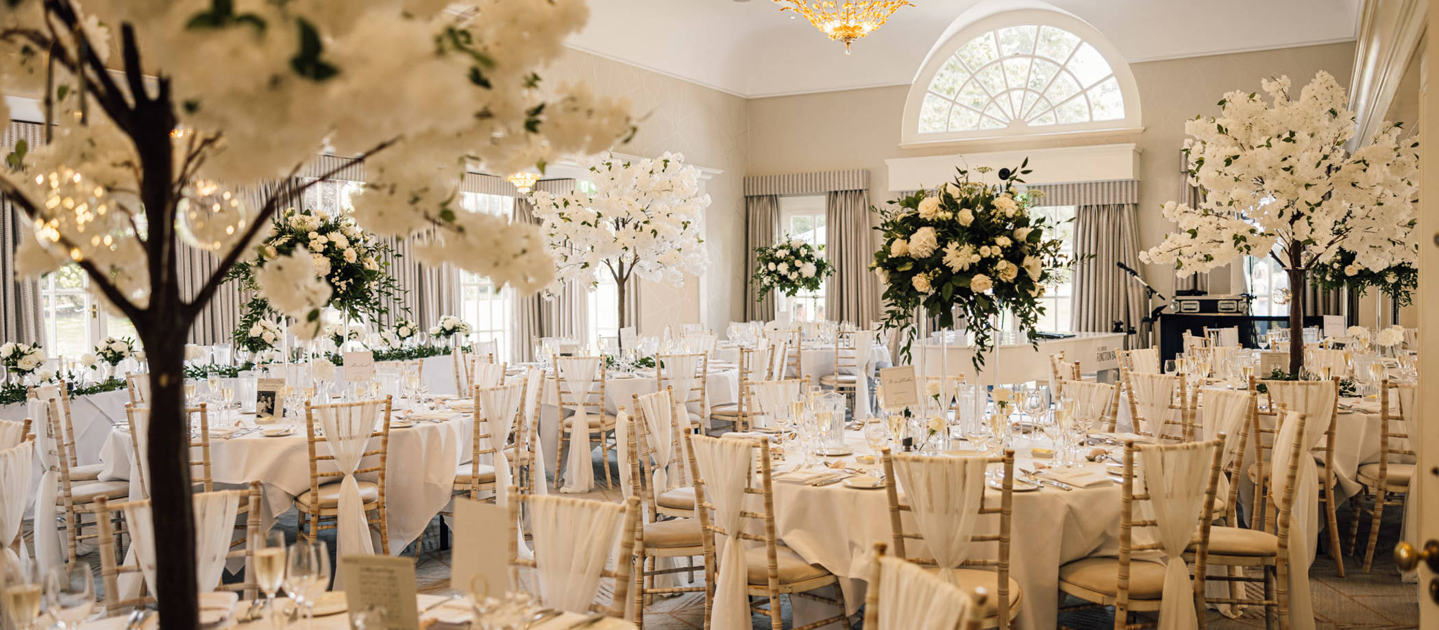 We always knew we wanted to go for a traditional white wedding. We used creams and golds to compliment the beautiful backdrop of the room and a mixture of fresh and faux foliage for our centerpieces. We really wanted the wow effect and the room certainly did this!