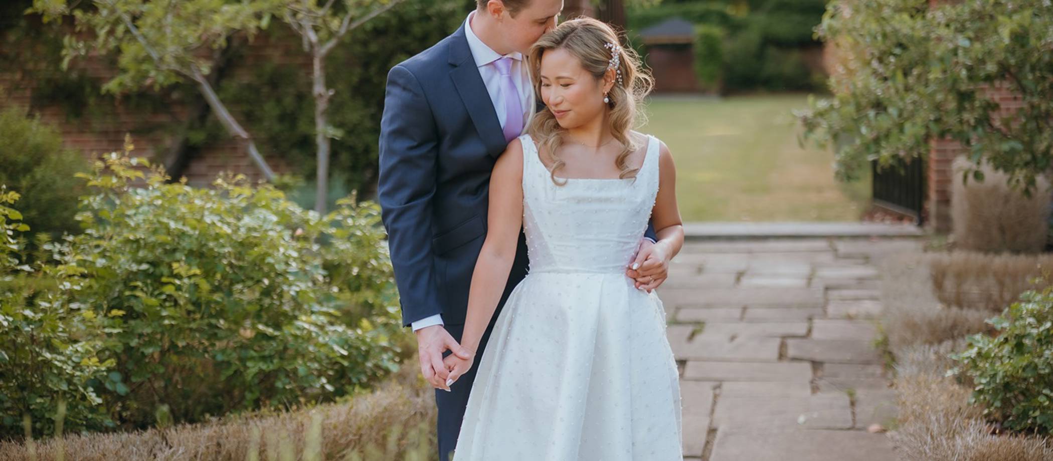 The groom and groomsmen suits were bought and tailored at Robert Tracey – a local, family owned business in the home town of the couple, Staines-Upon-Thames. They opted for a 3-piece navy suit with the groom wearing an ivory double breasted waistcoat.