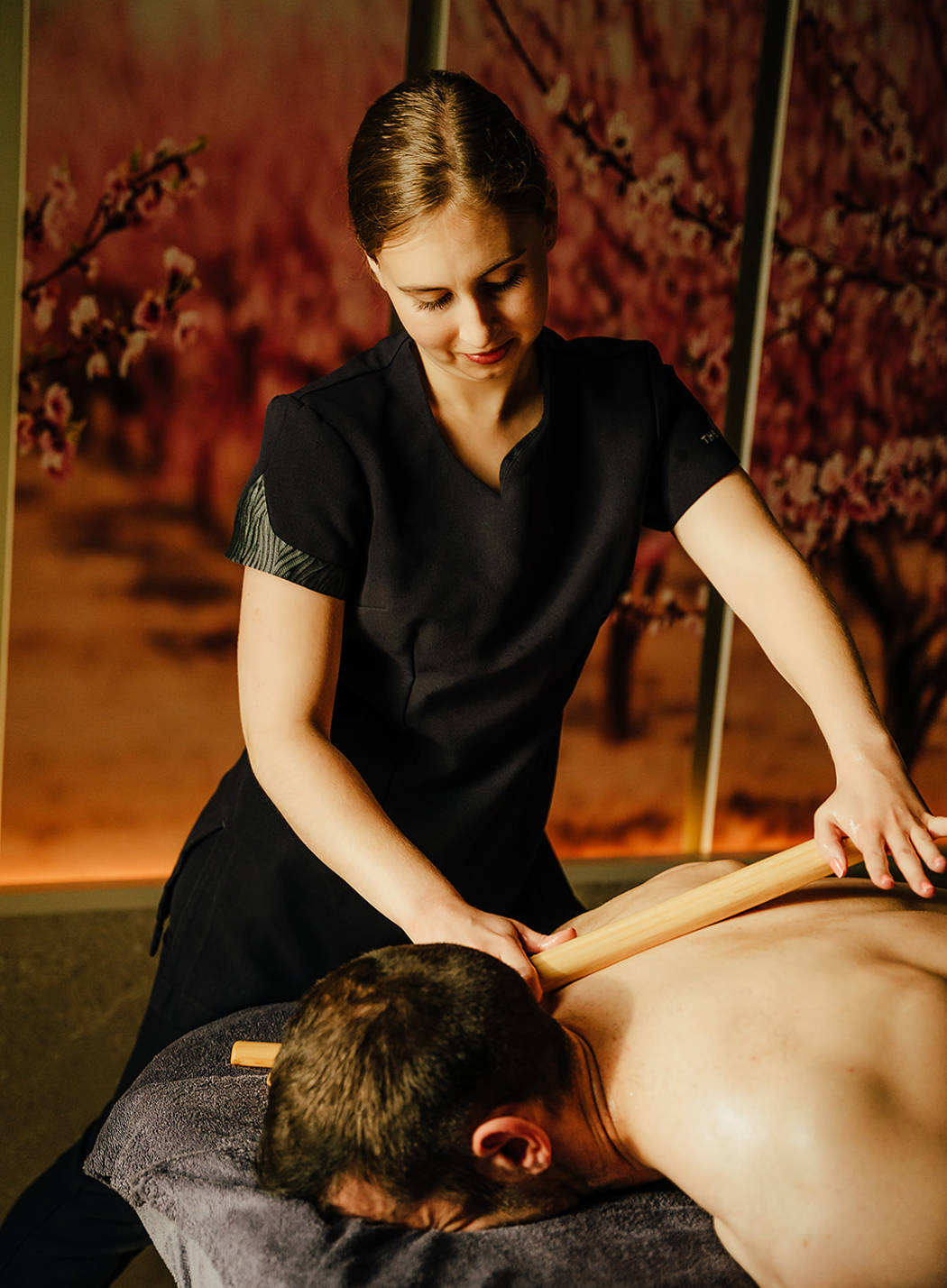 In this profoundly satisfying treatment, your therapist will use smooth bamboo canes for a firm, whole-body massage.