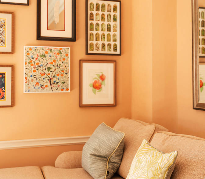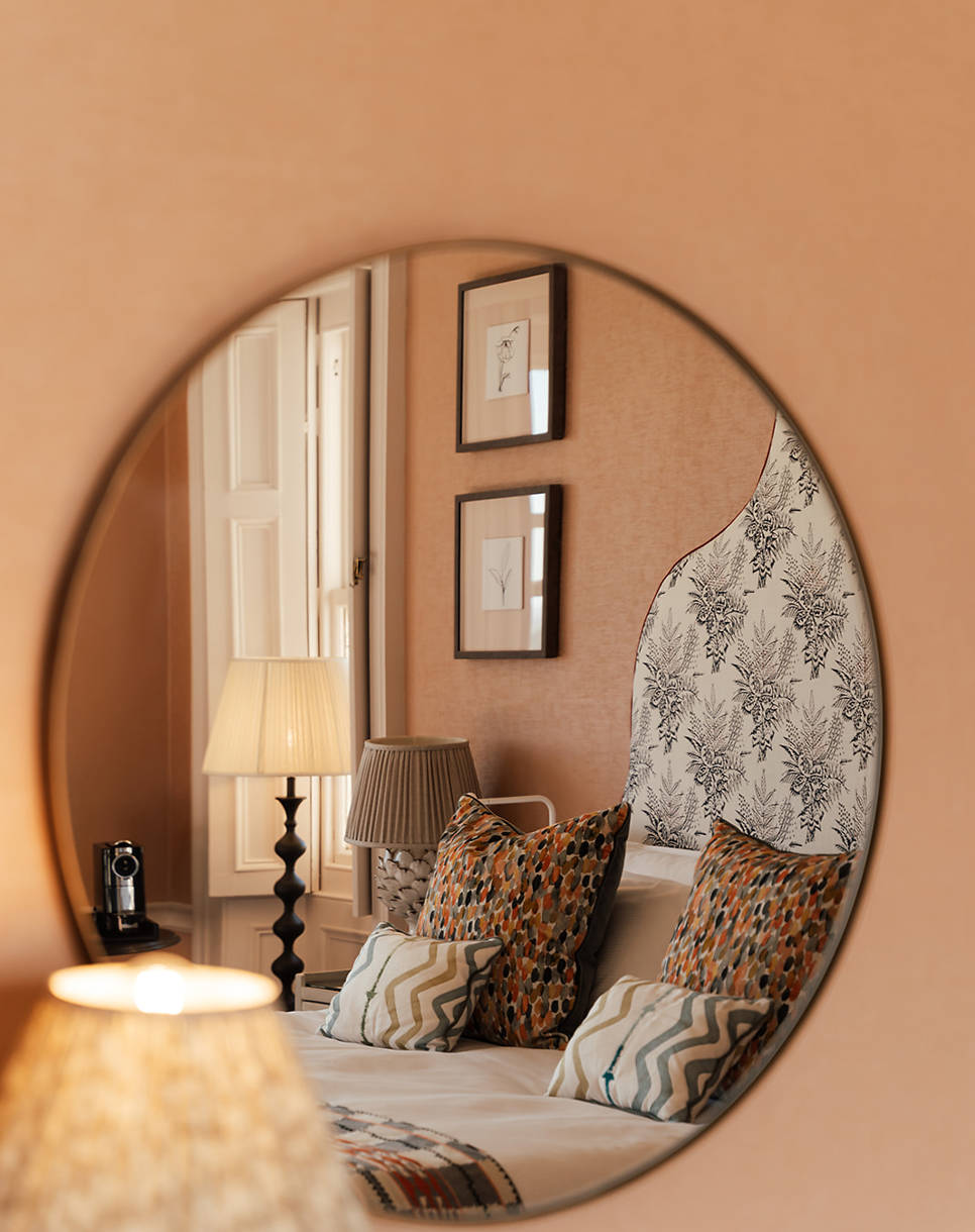 Clad in peachy tones, this is an airy, uplifting space, replete with mesmerising prints and exquisite upholstery. A feature fireplace and chandelier add to its stately charms.