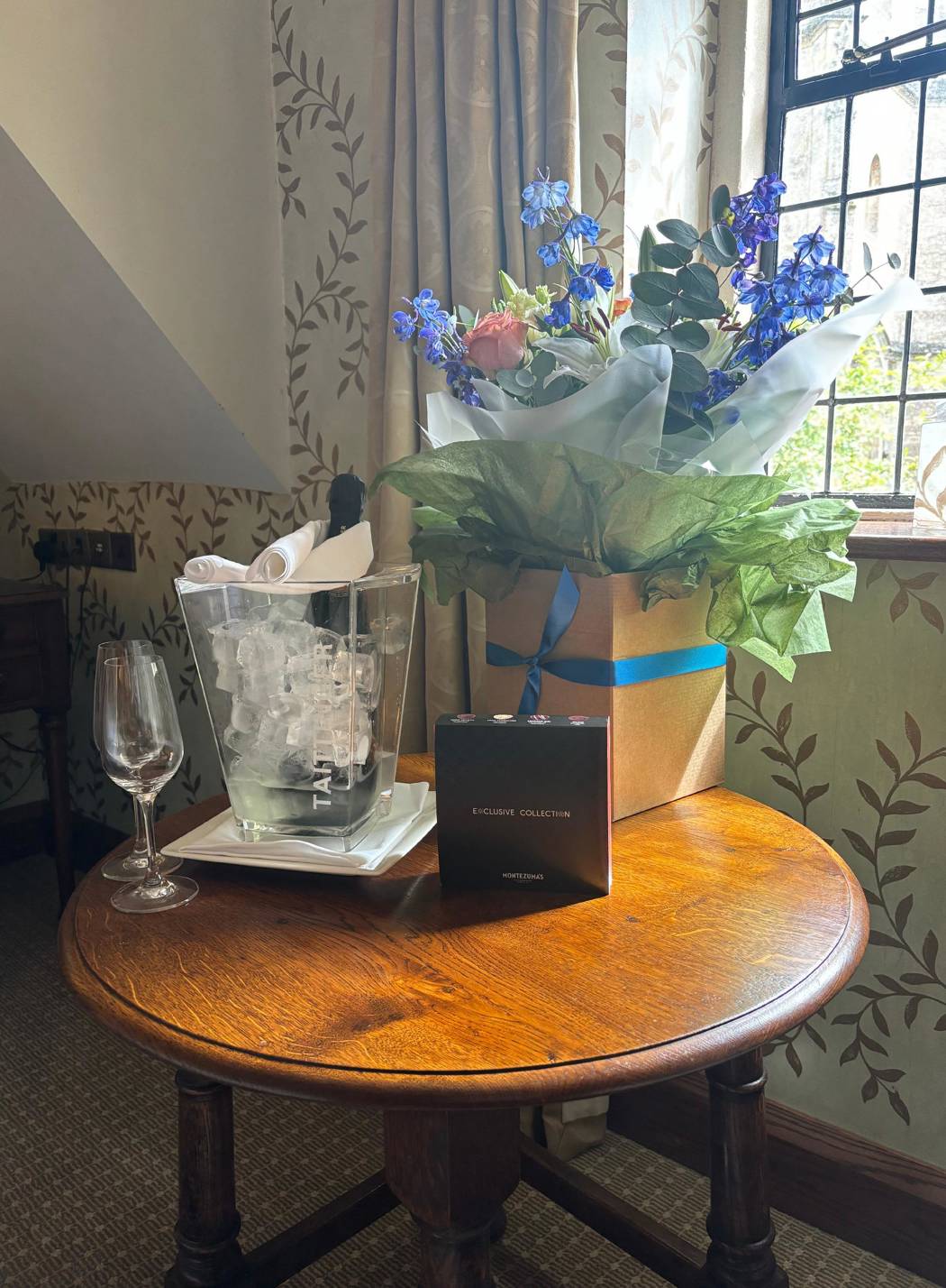 - A bottle of Taittinger champagne or Noughty non-alcoholic sparkling wine