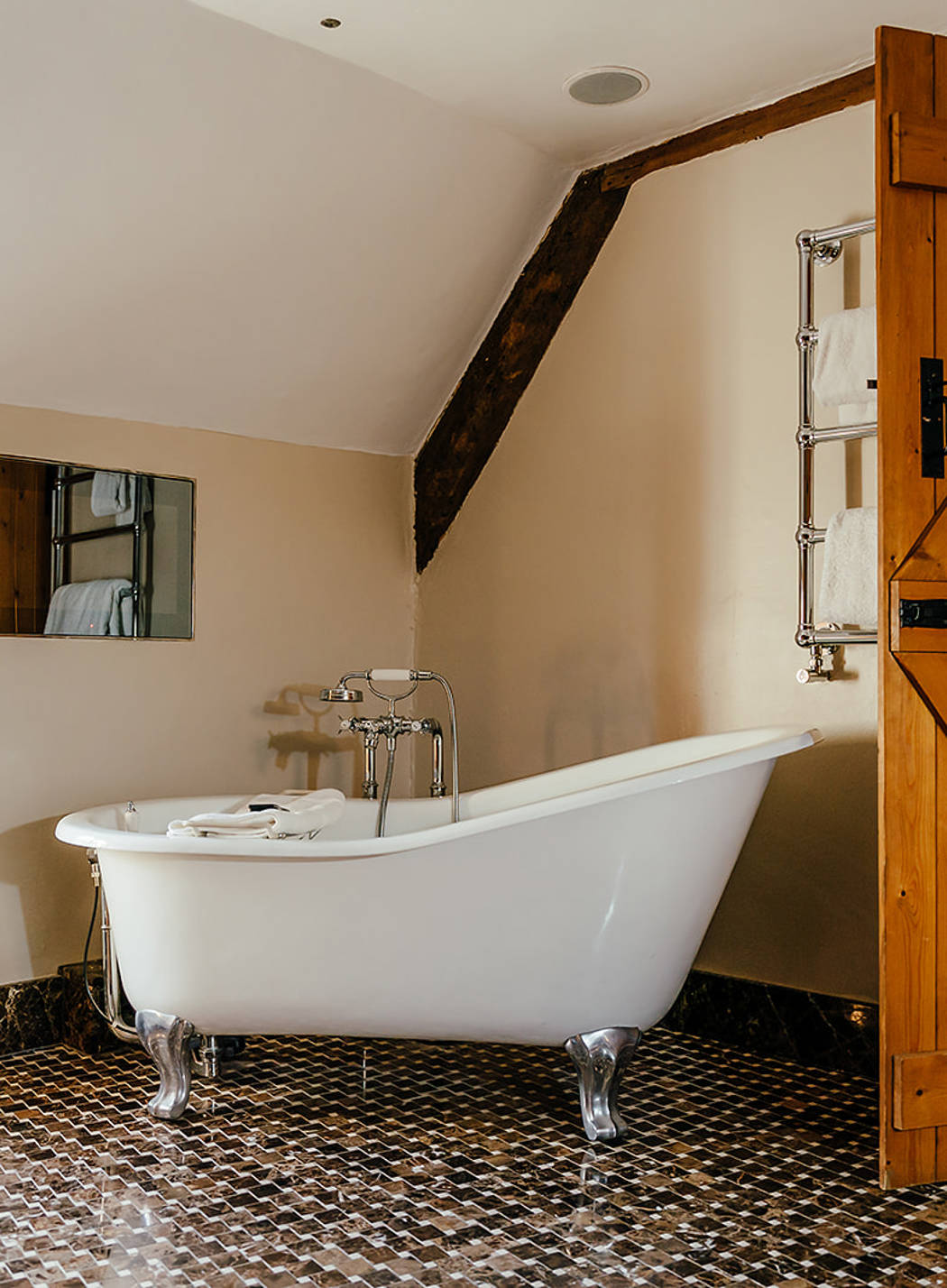 A stunning period suite with a cedar hot tub out back. This is the good life.