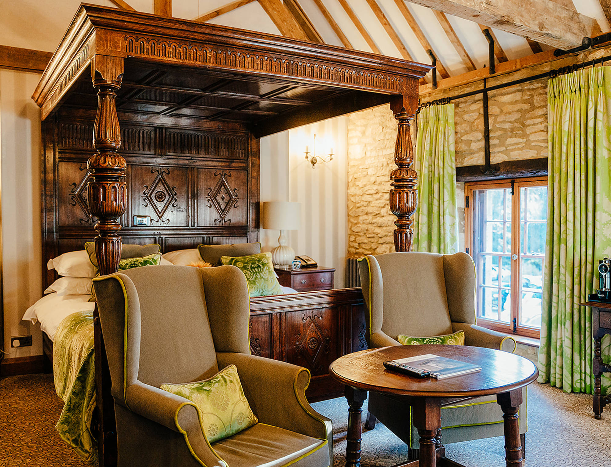 Each room has tremendous character – the intricate wood panelling, the exuberant wallpapers, perhaps a towering four-poster bed.