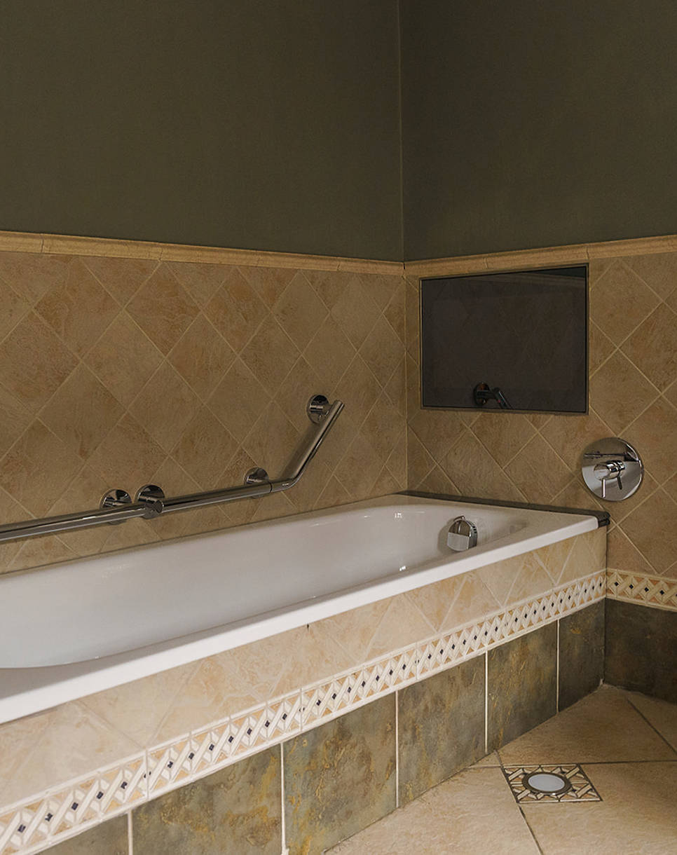 There’s even a TV at the foot of the bath – because why should you choose between your favourite show and an indulgent soak?