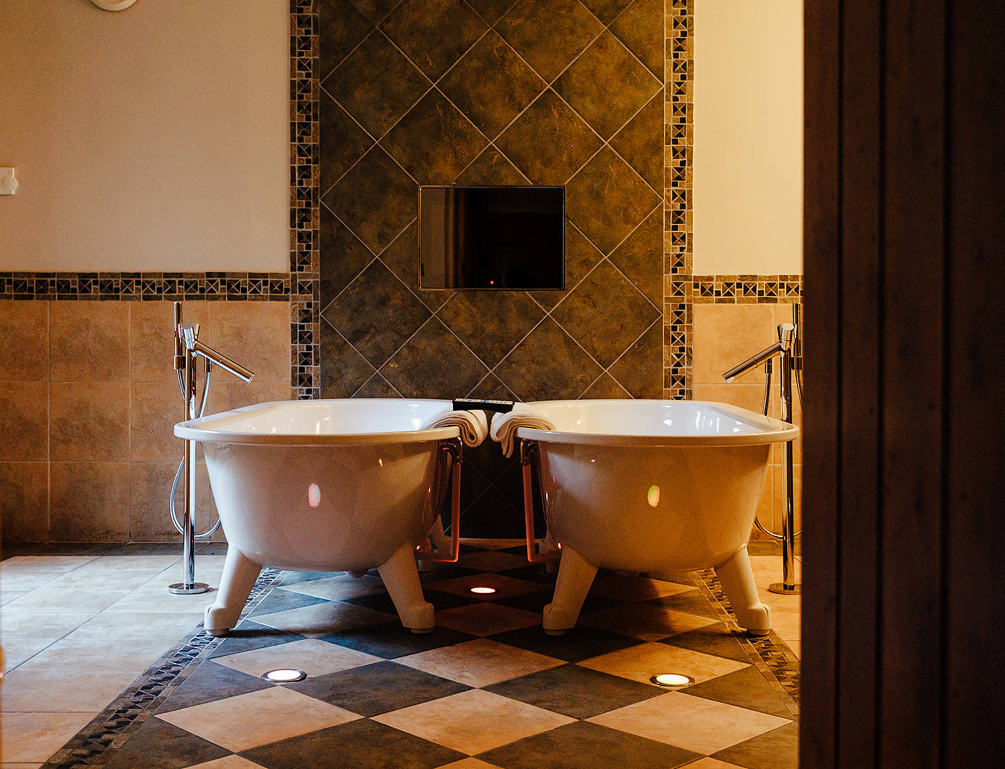 One room even has twin freestanding bathtubs – it’s decadence that borders on outrageous.