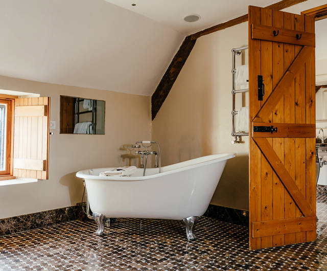 A stunning period suite with a cedar hot tub out back. This is the good life.