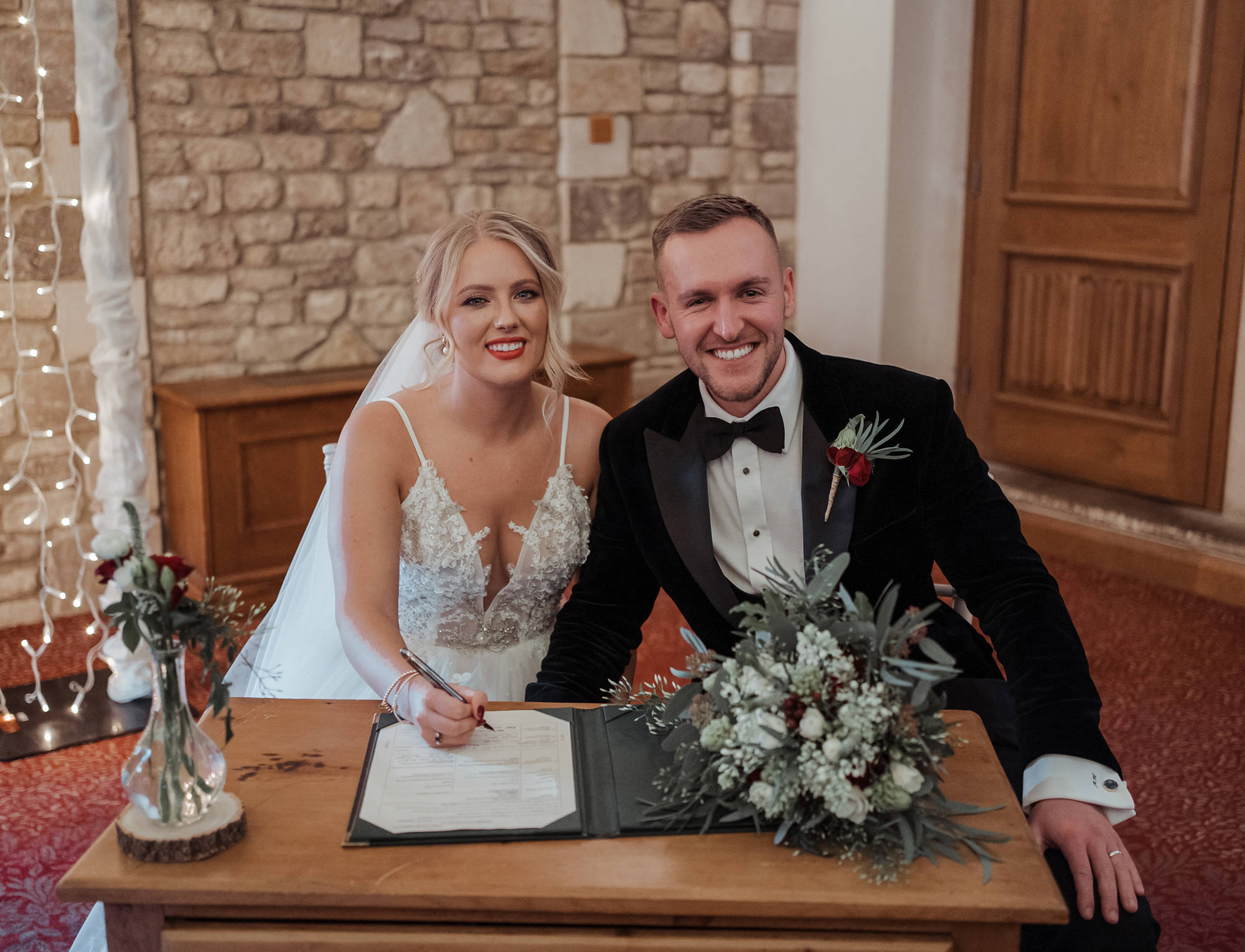We were very fortunate to have Kirsten Butler (The Wedding Helper) who styled our wedding. We asked for a hint of festivity whilst complimenting our shades of green colour scheme which was achieved perfectly on the day. We hired the fairy light canopy and fairy light backdrop from Cahoots events and this created a really festive feel to the Dunstanville suite in addition to the lovely Christmas tree that the Manor House already had up!